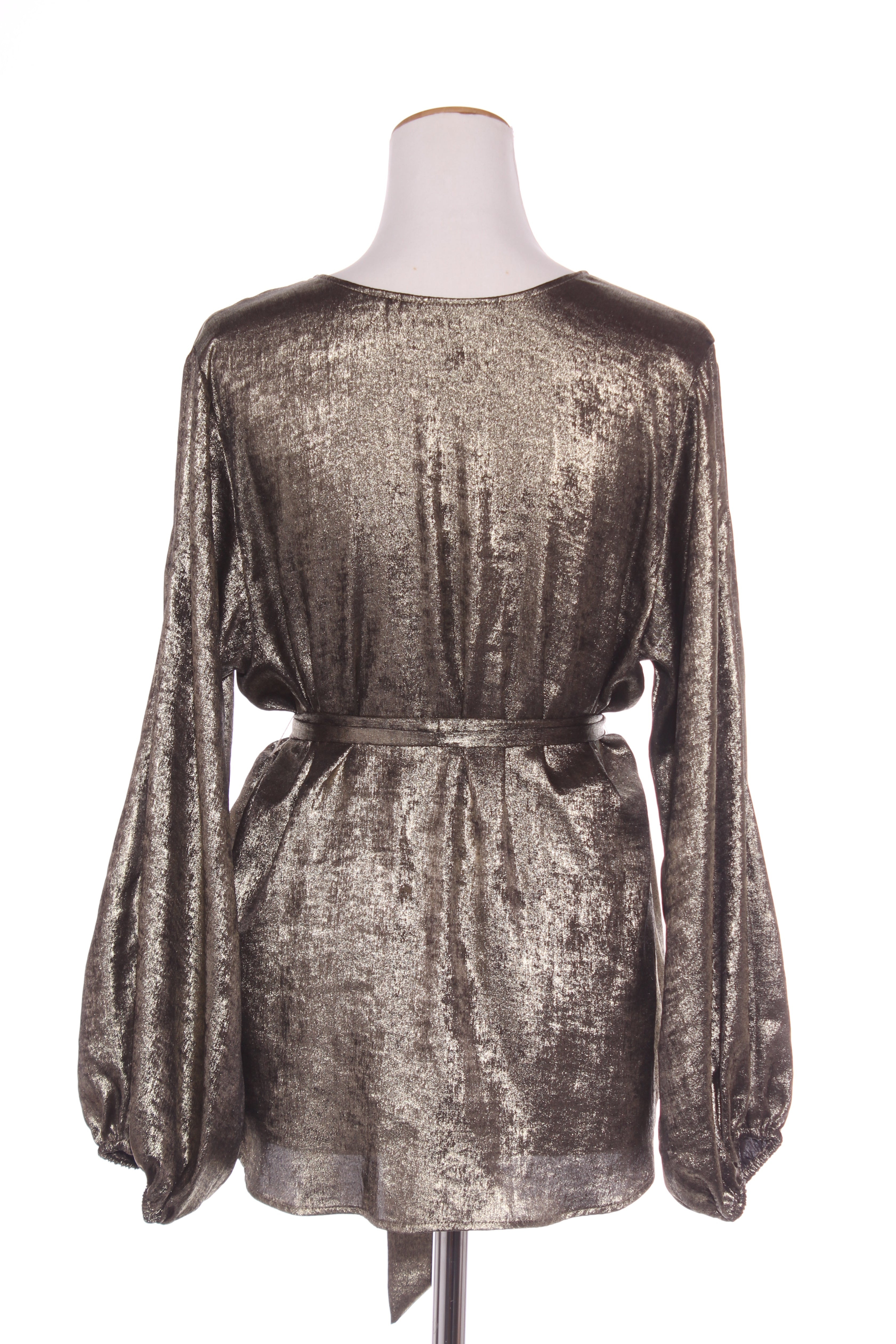 SIZE ON TAG: 12FITS LIKE: 12COLOUR: Black, dark goldFABRIC: PolyesterCONDITION: Excellent prelovedMEASUREMENTS:BUST: 55cms WAIST: 48cms LENGTH: 72cms NOTES: Wrap front ties and buttons in place. Matching...