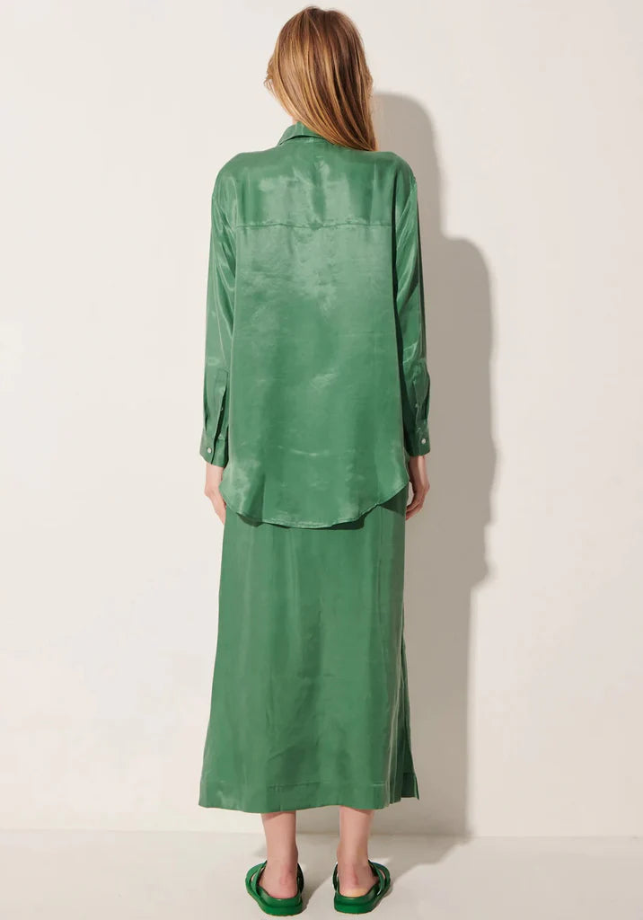 SIZE ON TAG: 8FITS LIKE: 8-10COLOUR: GreenFABRIC: CuproCONDITION: Brand new with tagMEASUREMENTS:BUST: 55cms WAIST: 57cms LENGTH: 69-78cmsNOTES: A classic shirt silhouette gets a luxe cupro update...