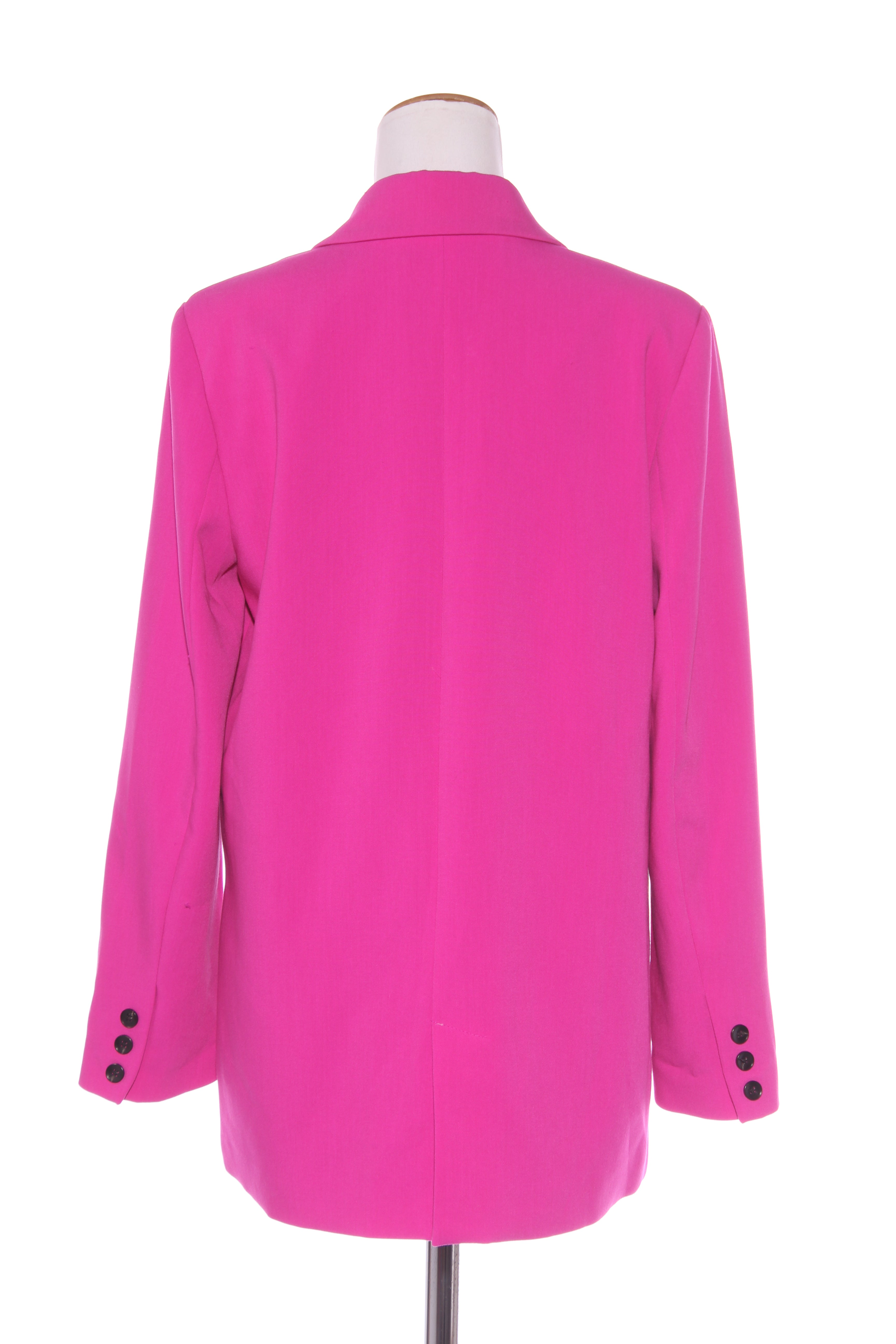 NOTES: Button up front. Side pockets sewn closed. Shoulders have padding. Fully lined. Fabric has stretch.