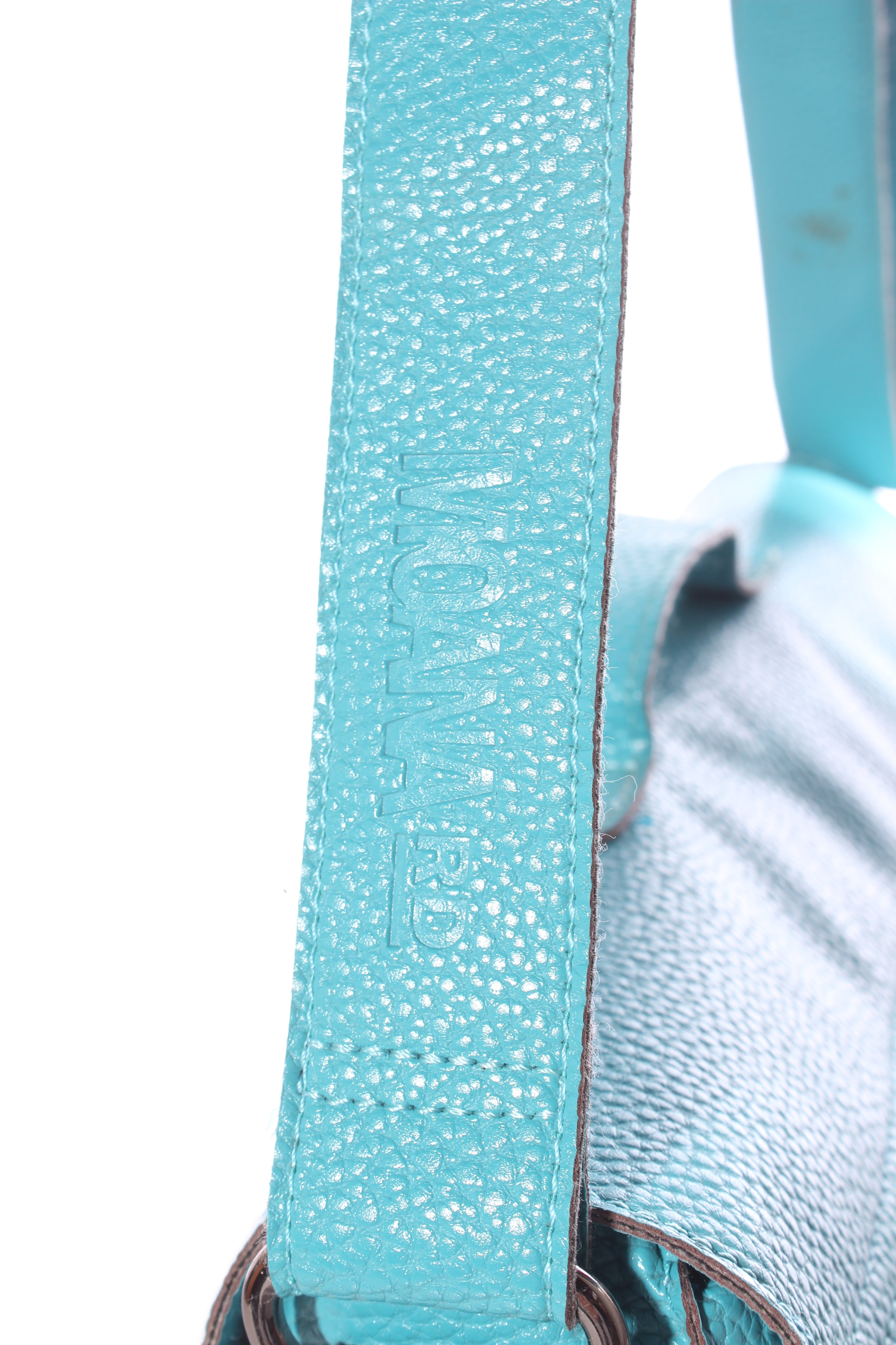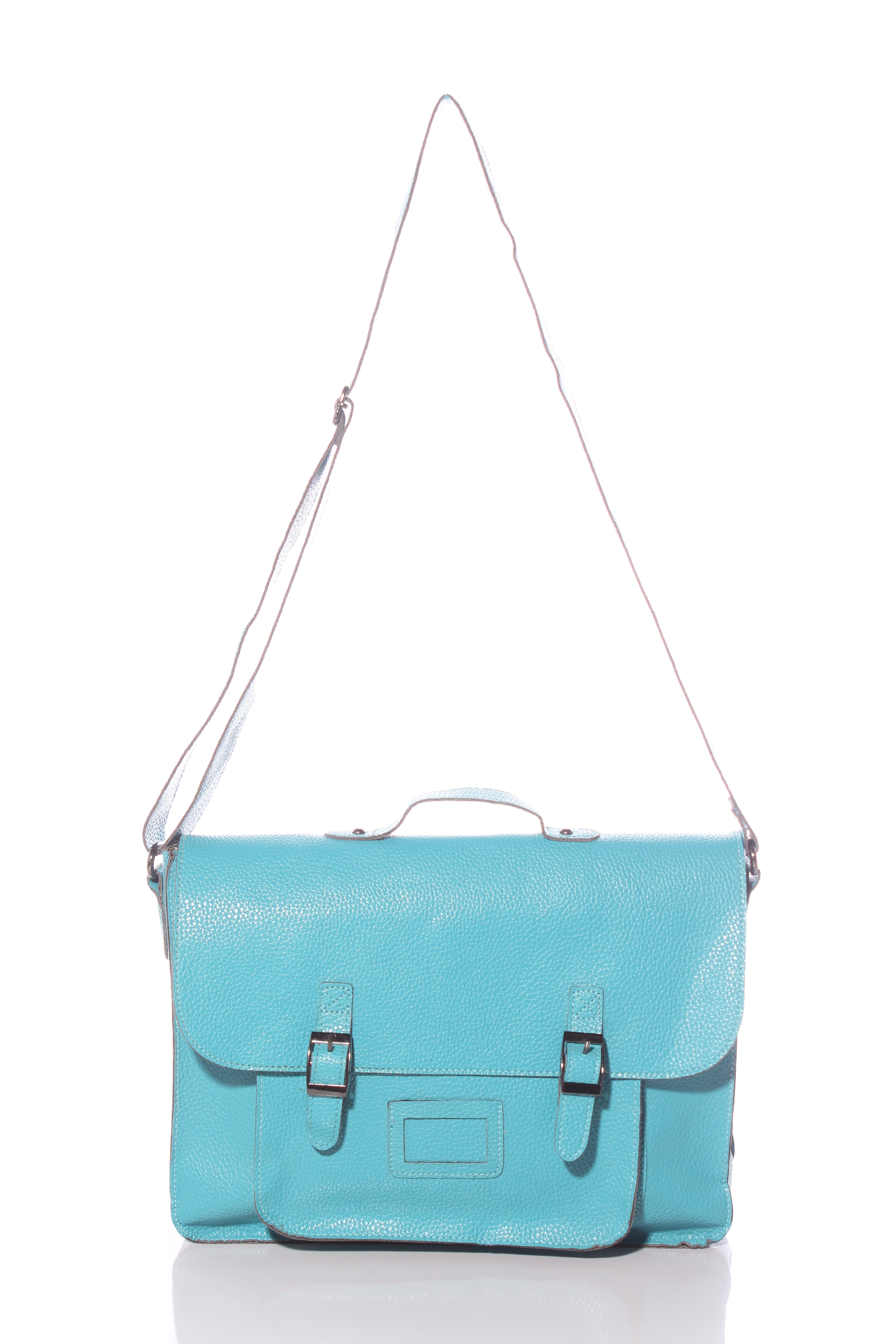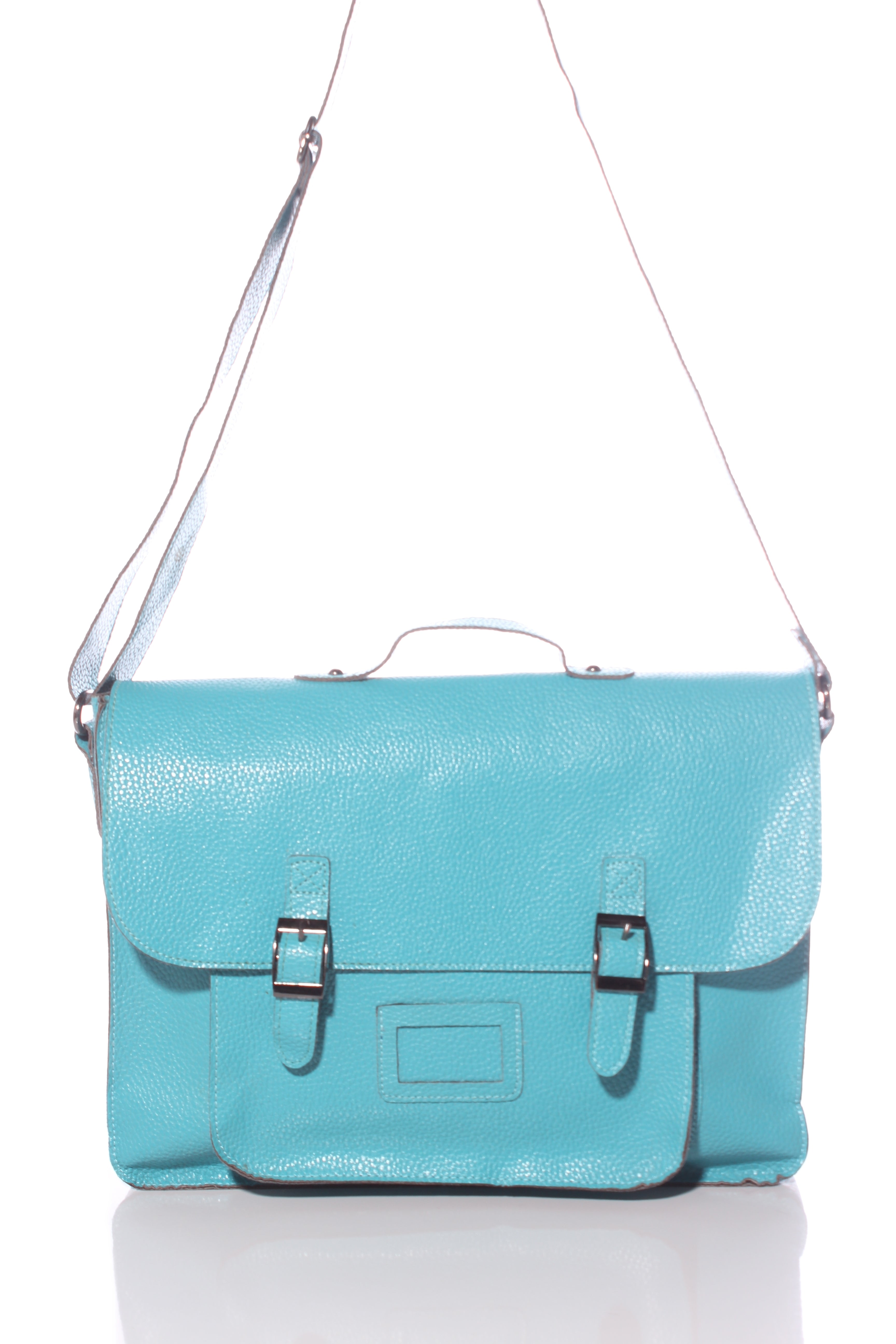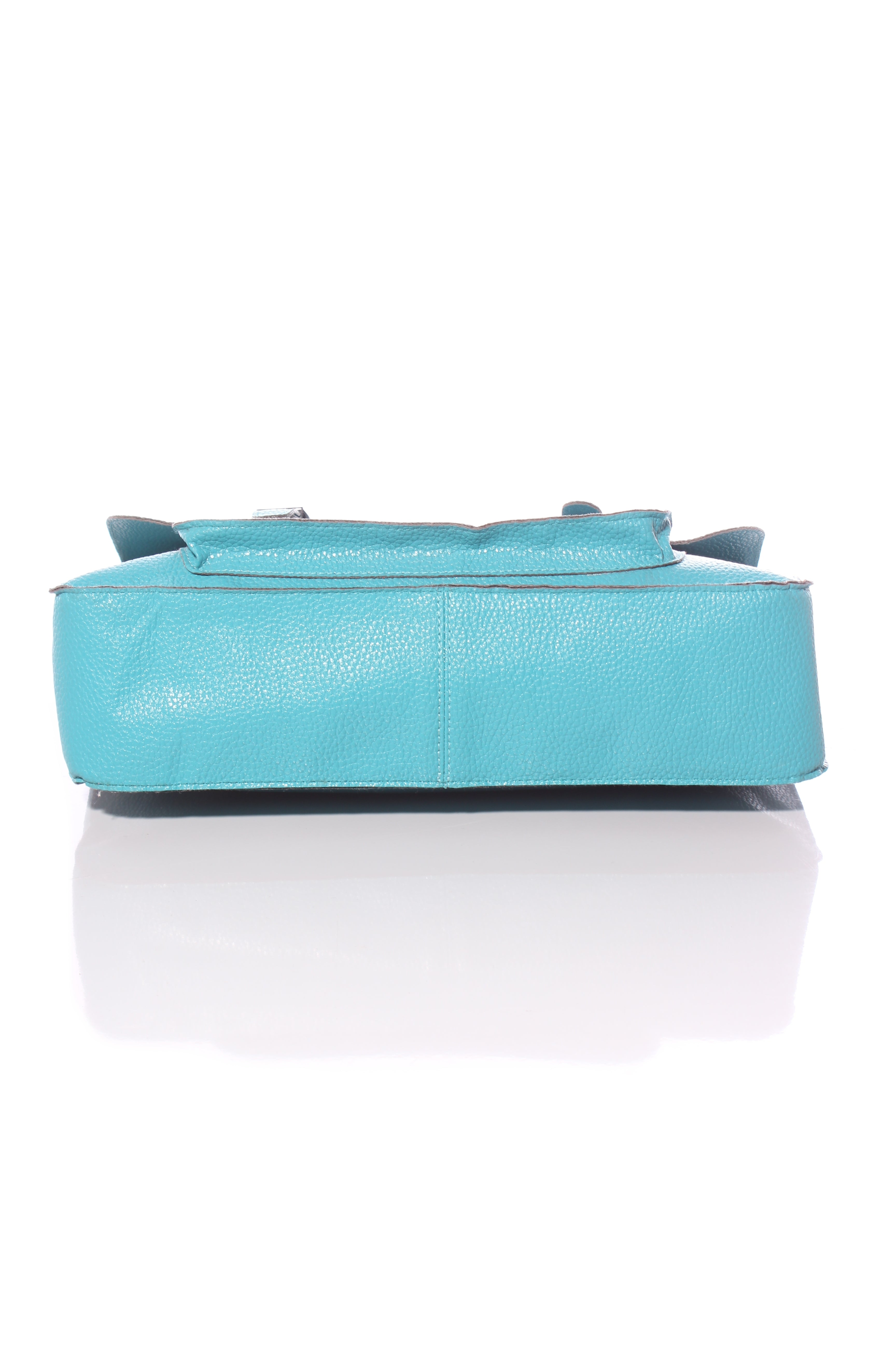 COLOUR: Aqua FABRIC: PU leatherCONDITION: Excellent prelovedMEASUREMENTS:HEIGHT: 30cms WIDTH: 37cms DEPTH: 10cms STRAP: 73-136cms NOTES: Magnetic snap button fastens flap. Features a front pocket and...