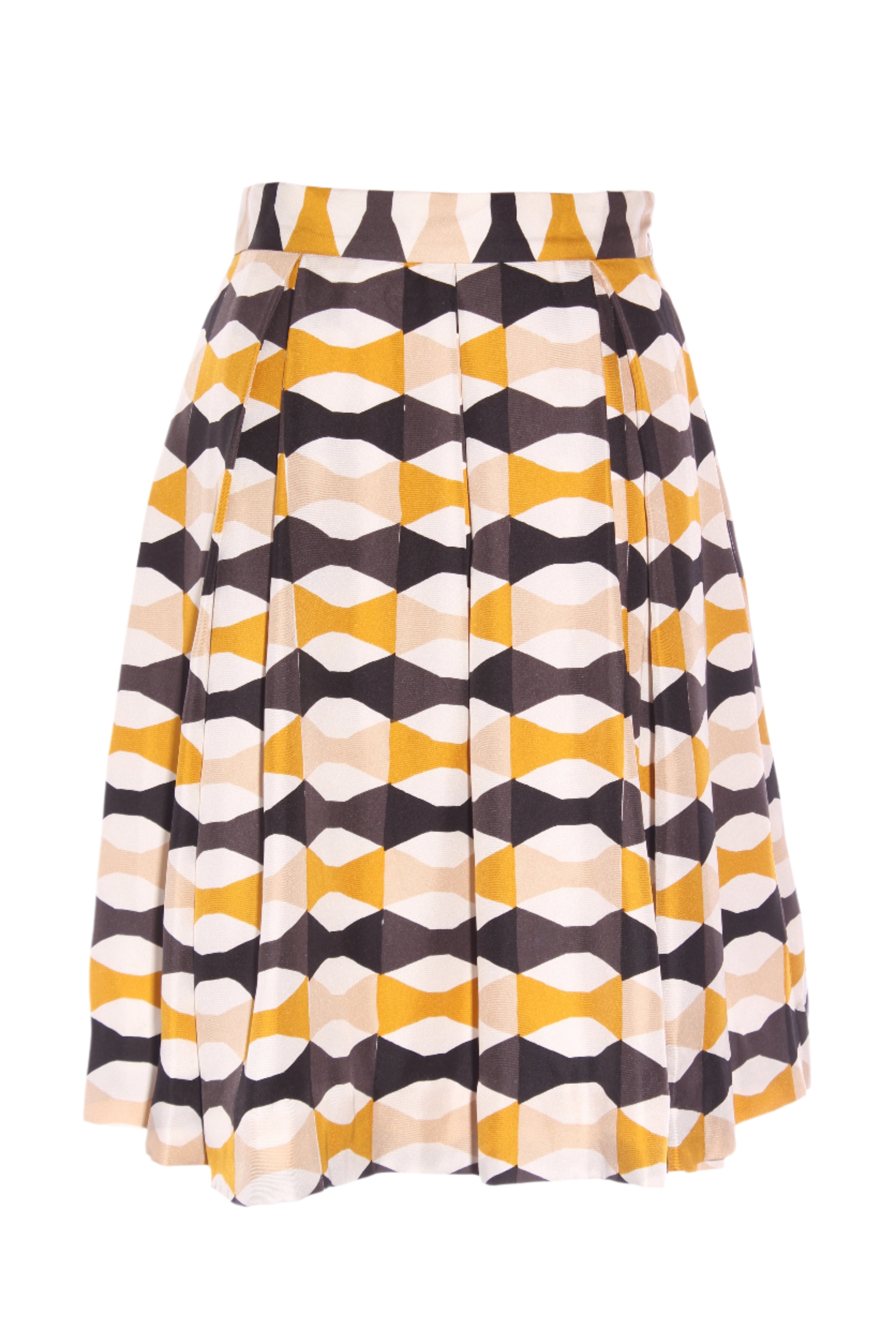 SIZE ON TAG: 4FITS LIKE: 8COLOUR: Gold, black, beige, whiteFABRIC: Silk, Lining - polyesterCONDITION: Excellent prelovedMEASUREMENTS:WAIST: 36cms HIPS: 60cms LENGTH: 57cmsNOTES: Side hook 'n' eye and...