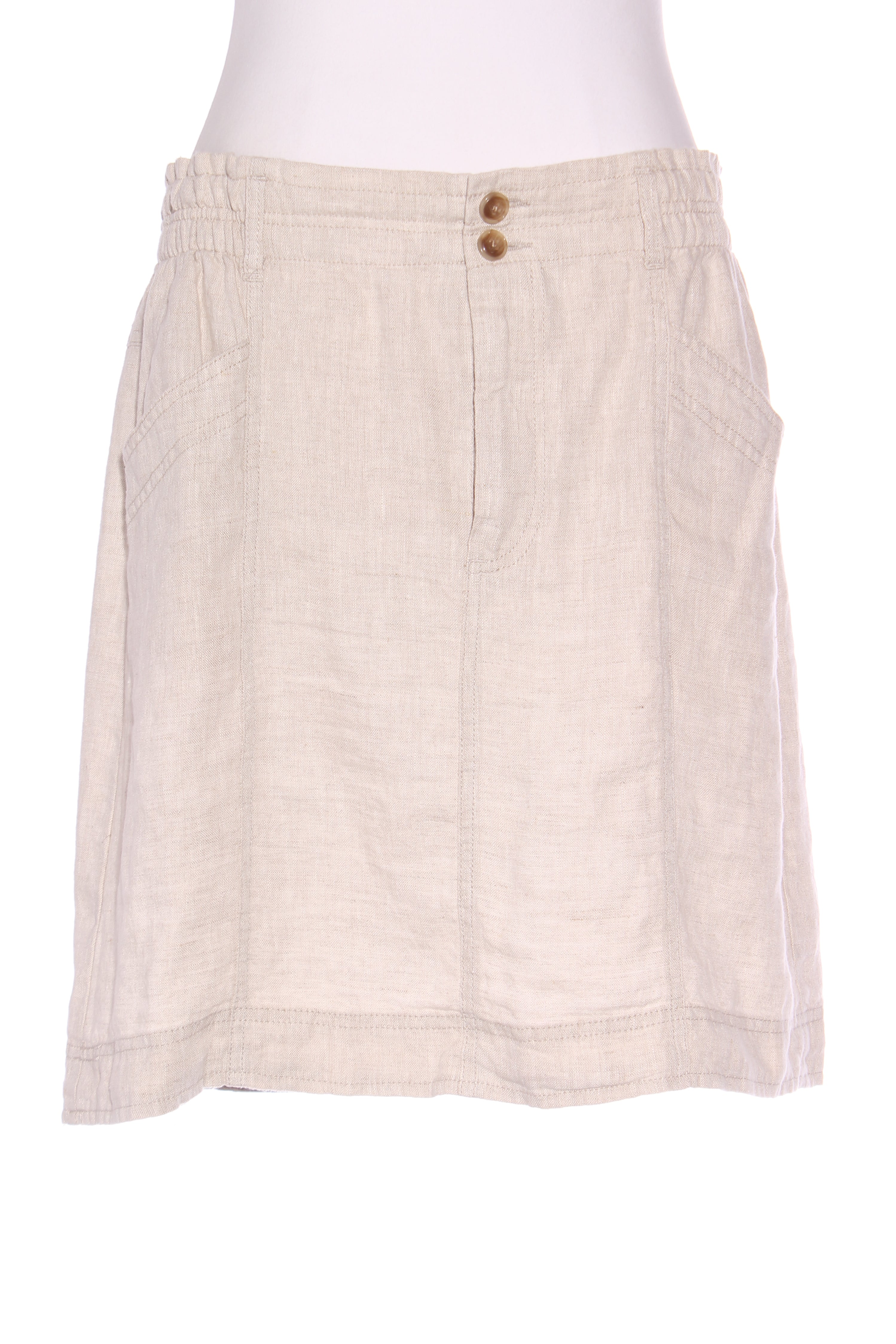 SIZE ON TAG: 14FITS LIKE: N/ACOLOUR: BeigeFABRIC: Tag removed, linen, spandexCONDITION: Excellent preloved, missing drawstringMEASUREMENTS:WAIST: 42cms HIPS: 59cms LENGTH: 48-52cmsNOTES: Button and zip up front. Elasticated...