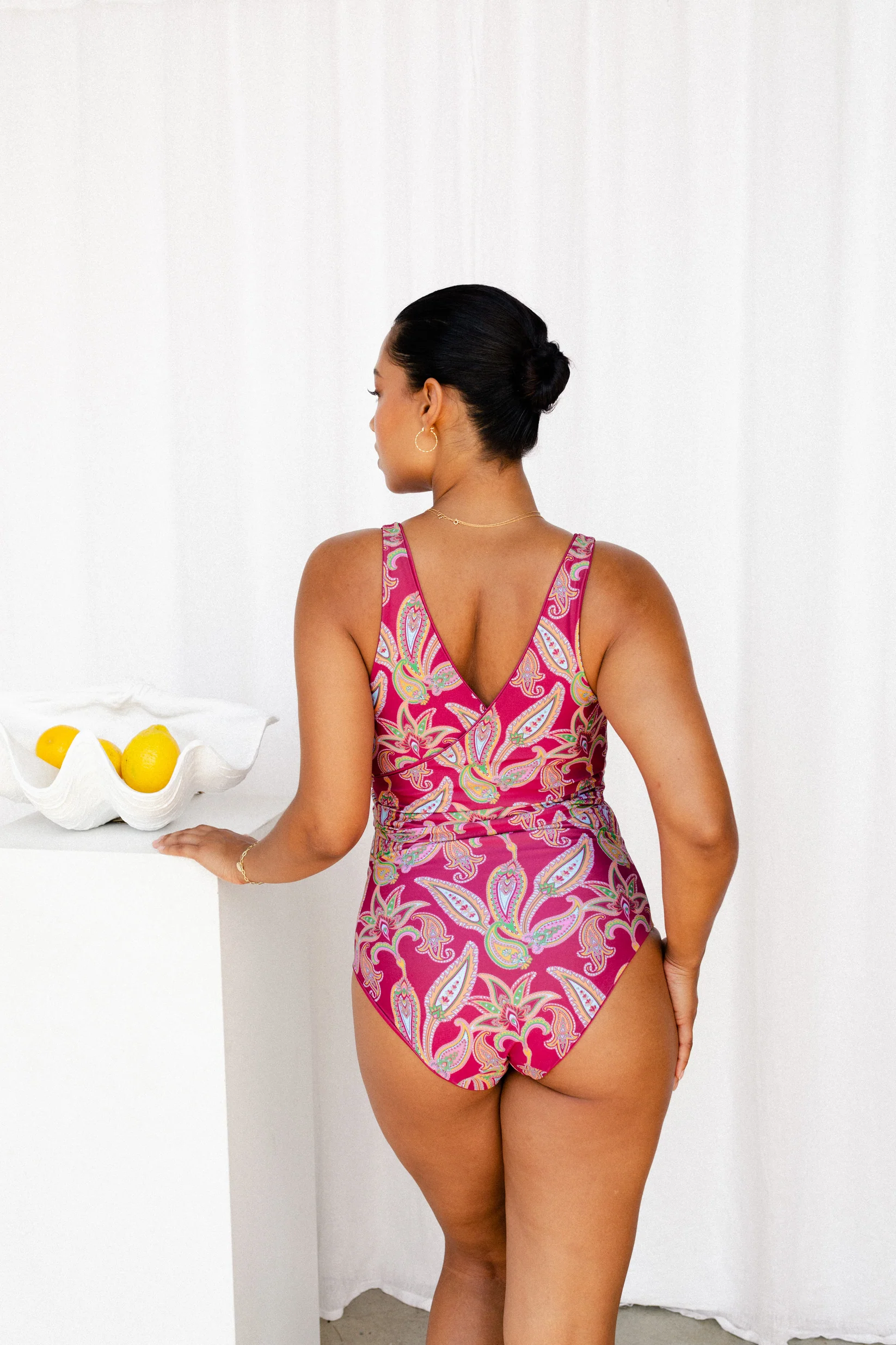 SIZE: 14FITS LIKE: 14COLOUR: Pink, multiFABRIC: Italian recycled nylon and polyesterCONDITION: Like new - missing one tie NOTES: We’ve got your summer sorted with the Paisley in Fuchsia Sangria. Our...