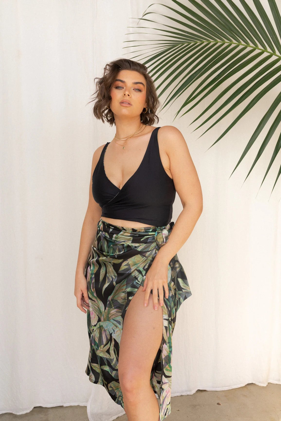 SIZE: O/SFITS LIKE: N/ACOLOUR: Green, black, multiFABRIC: Italian recycled nylon and polyesterCONDITION: Like new NOTES: Elevate your summer fashion style and slip into the timeless Martinique Isla Wrapskirt for effortless and...