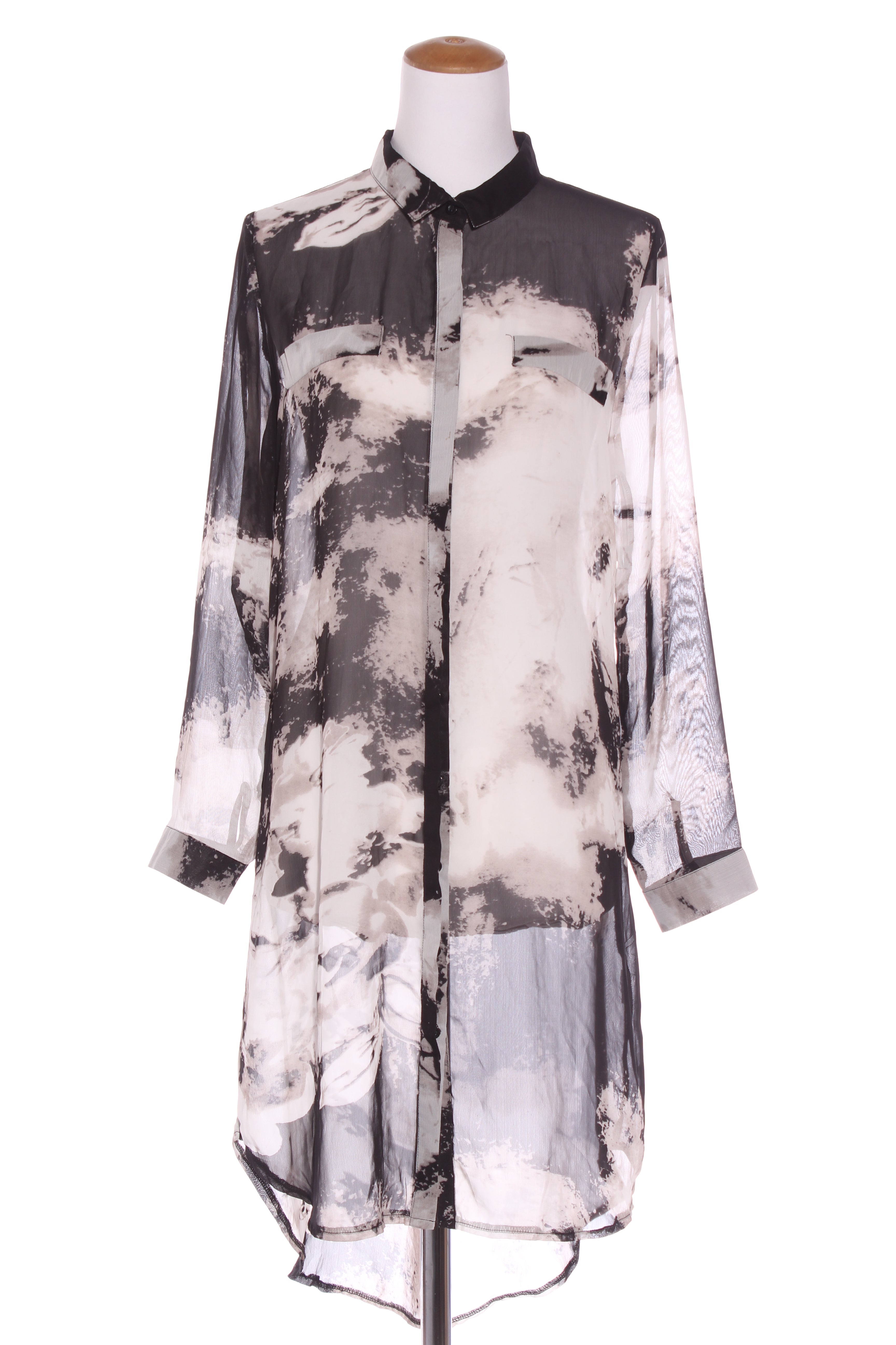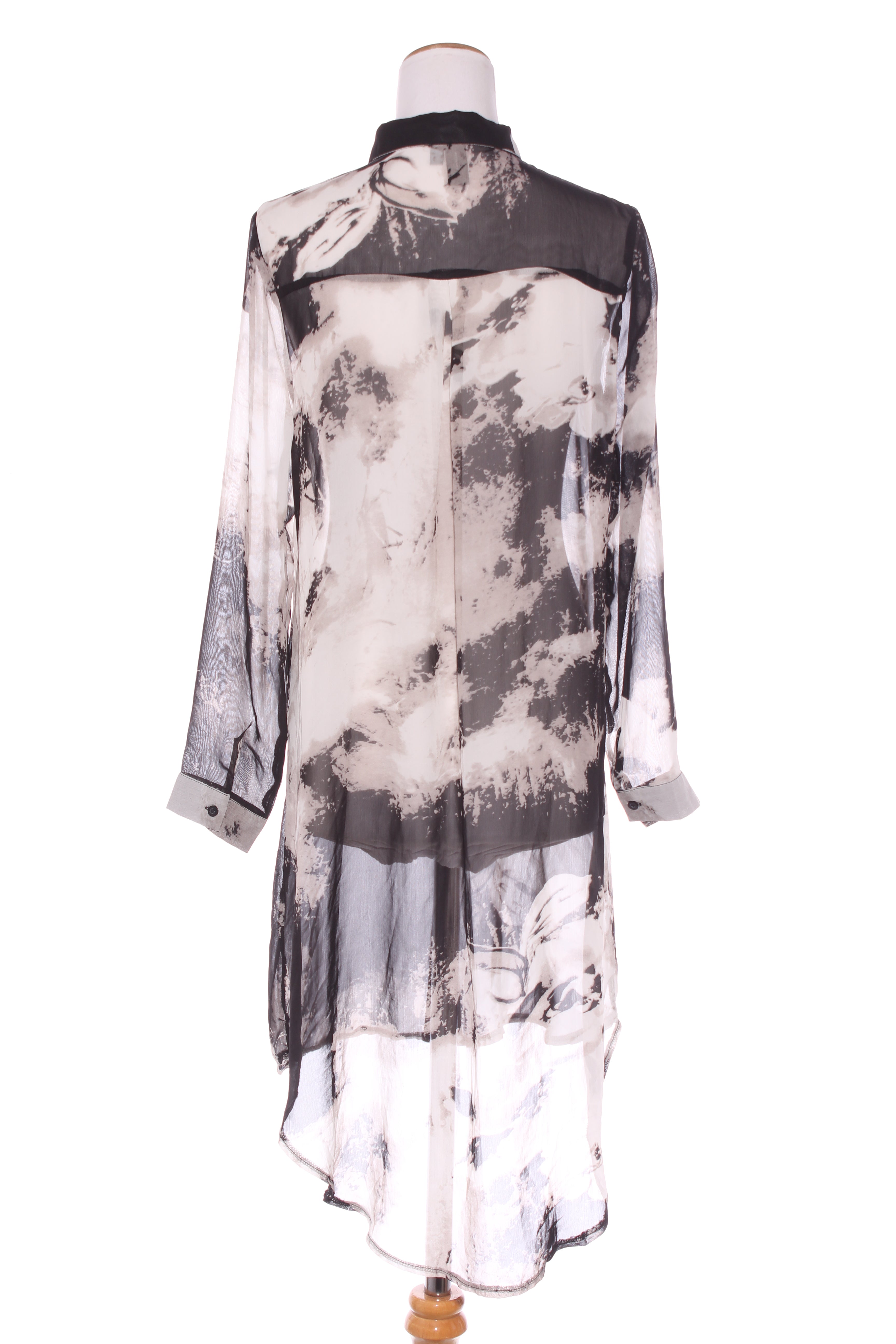 NOTES: Button up front and sleeve ends. Faux front pocket. Slip required.