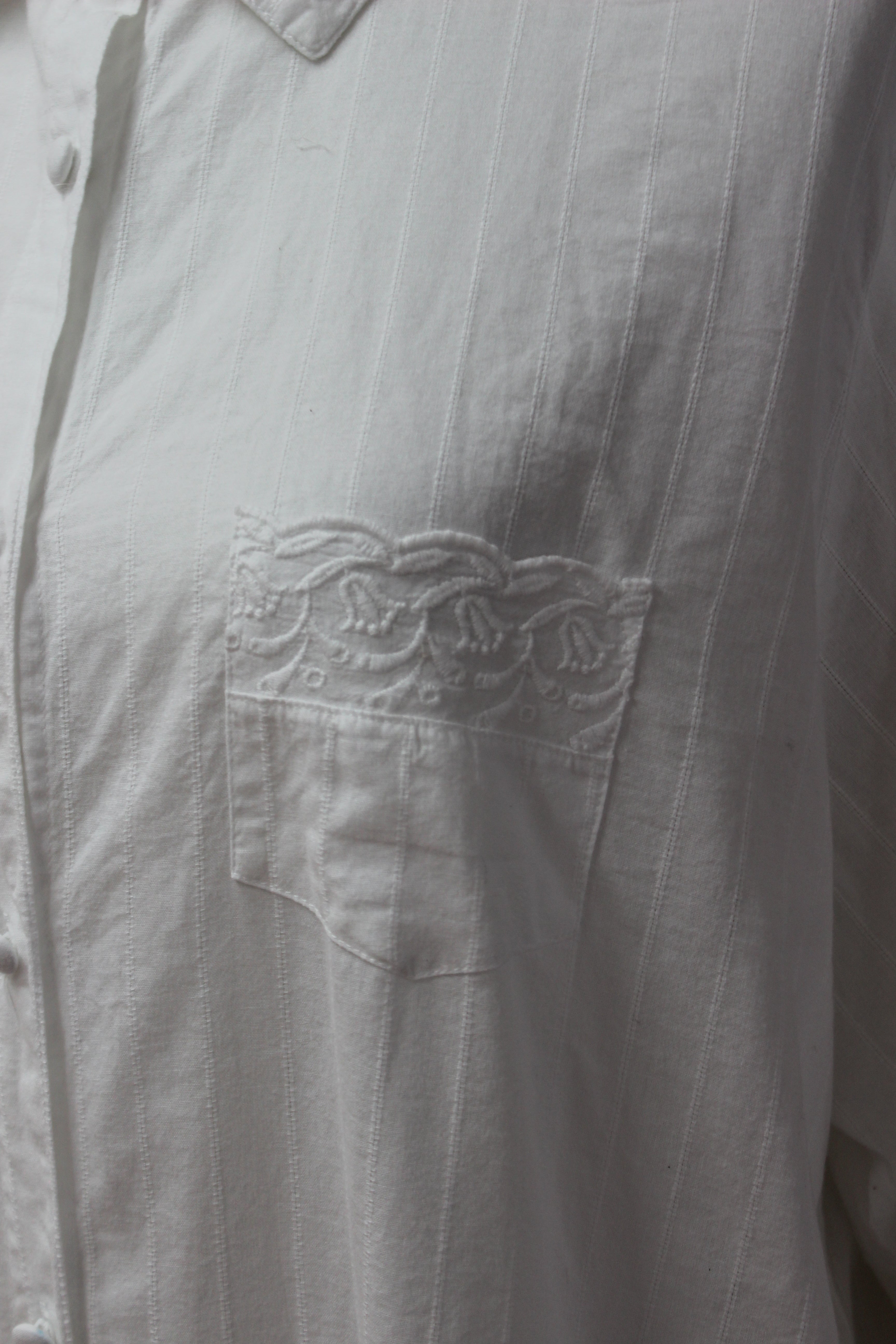 NOTES: Button up front and sleeve ends. Single front pocket.