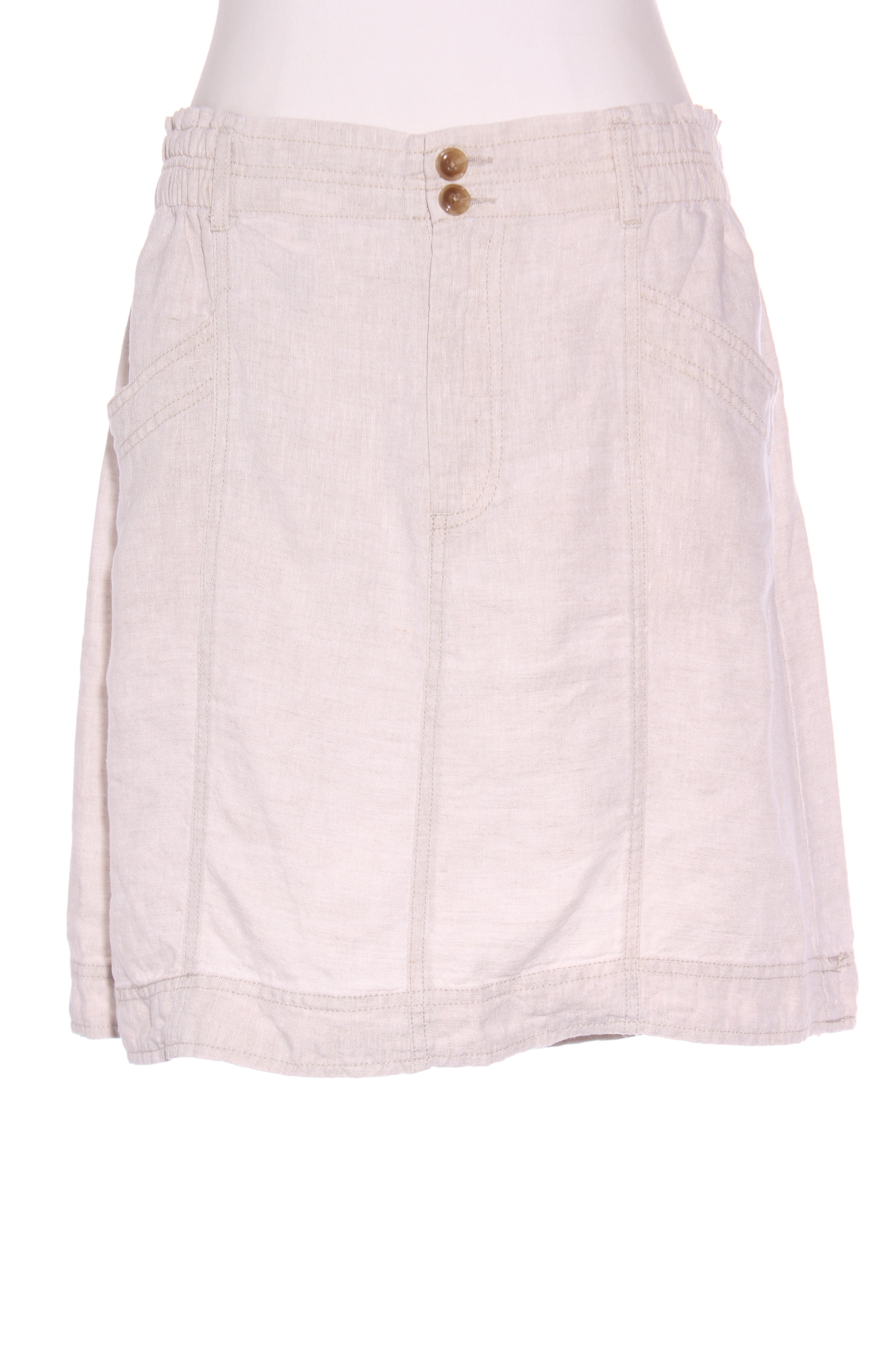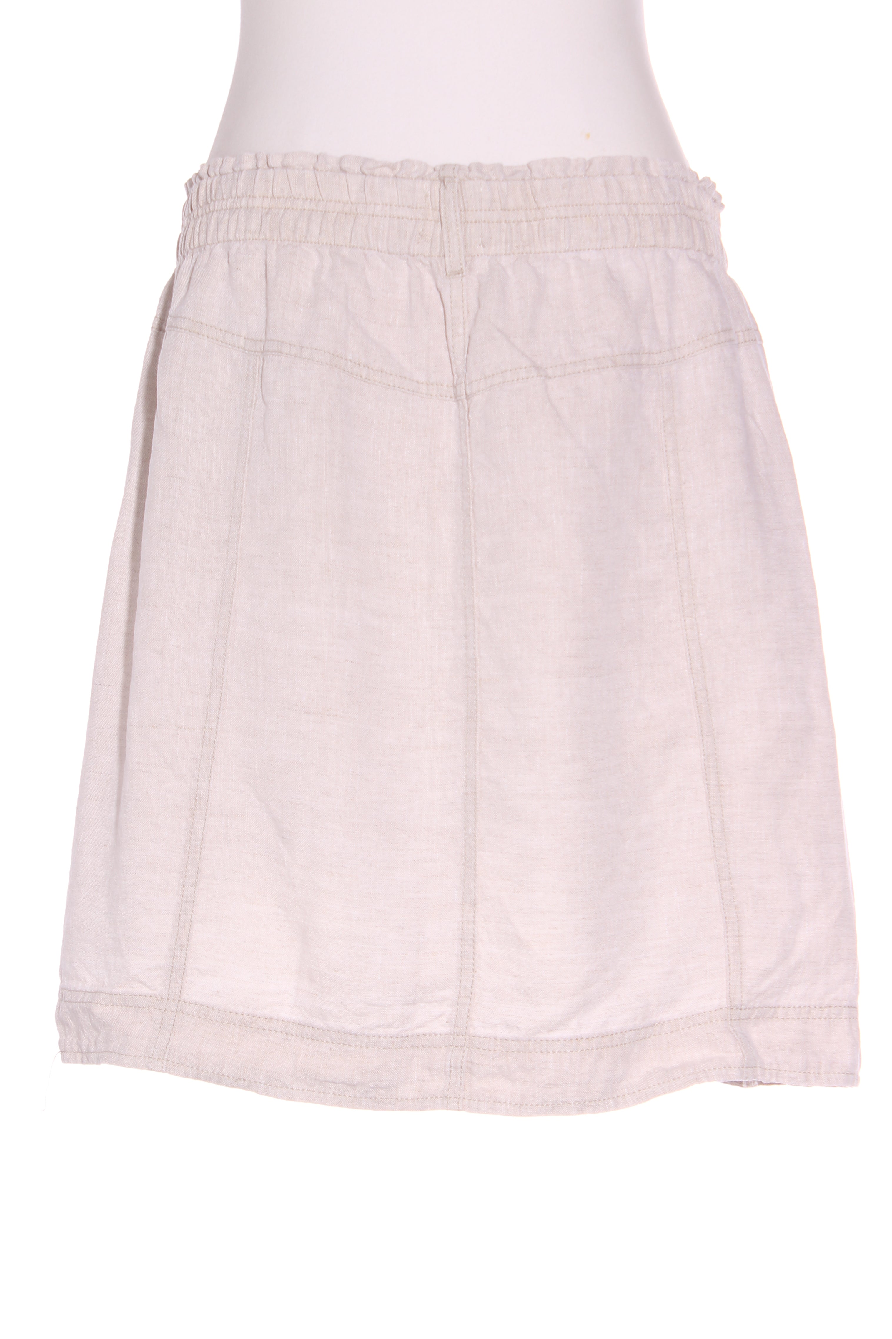 SIZE ON TAG: SFITS LIKE: 10COLOUR: Beige, brown, whiteFABRIC: 75% viscose, 25% linenCONDITION: Excellent prelovedMEASUREMENTS:WAIST: 36cms HIPS: 59cms LENGTH: 76-81cmsNOTES: Elasticated waist. Fabric has stretch.