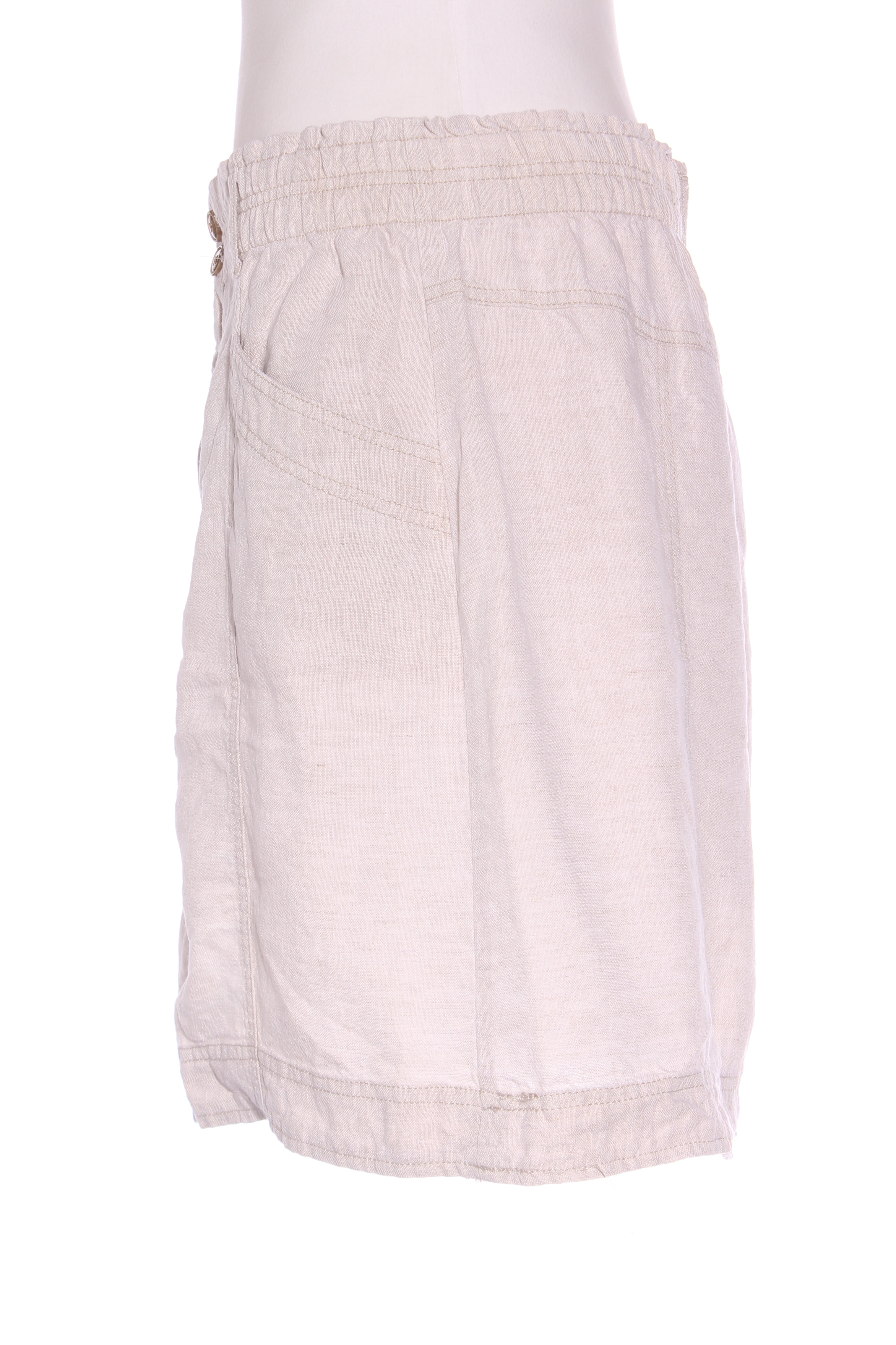 SIZE ON TAG: 14FITS LIKE: N/ACOLOUR: OatmealFABRIC: LinenCONDITION: Excellent prelovedMEASUREMENTS:WAIST: 43cms HIPS: 57cms LENGTH: 48-50cms NOTES: Button and zip up front. Elasticated waist with belt loops. Front...