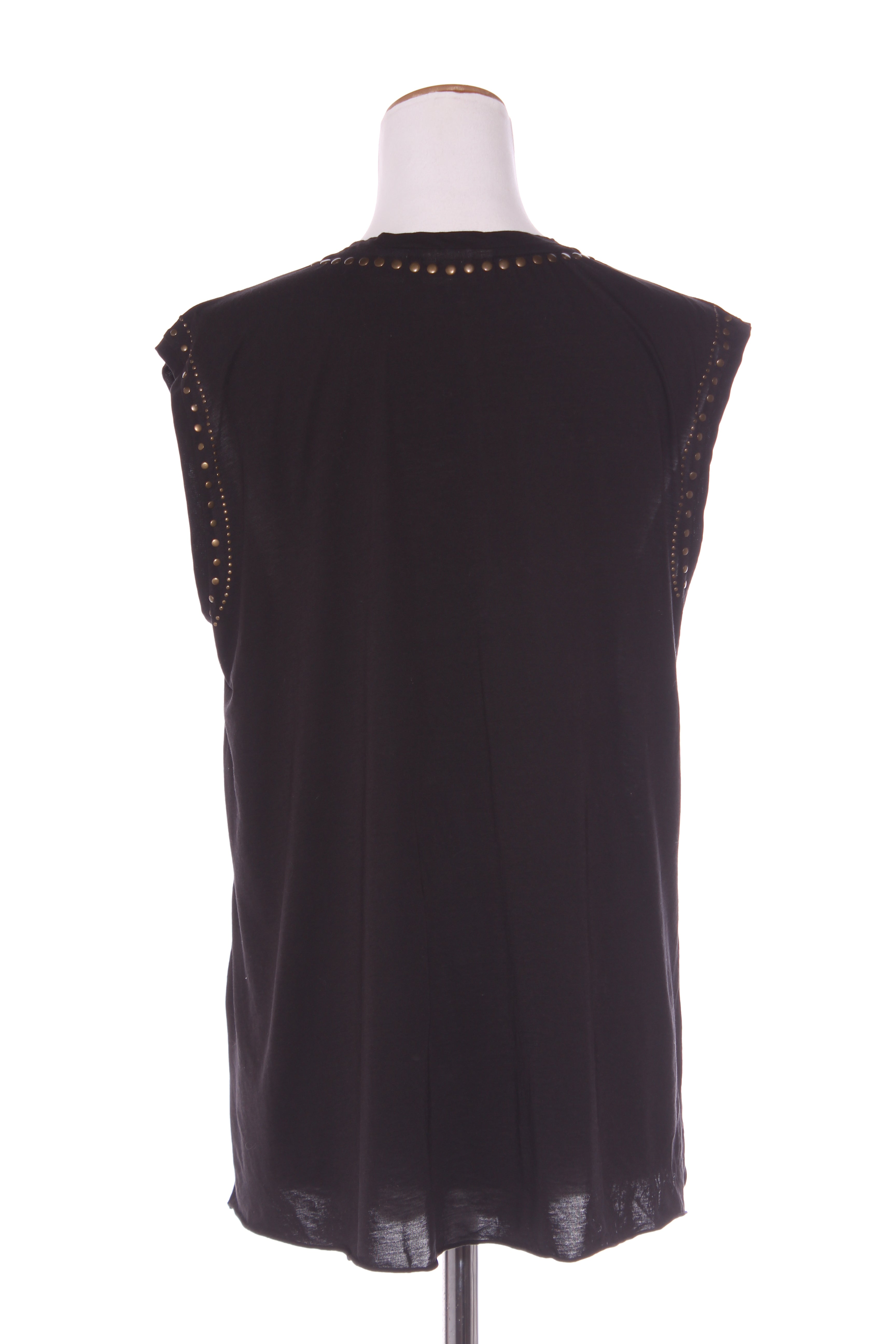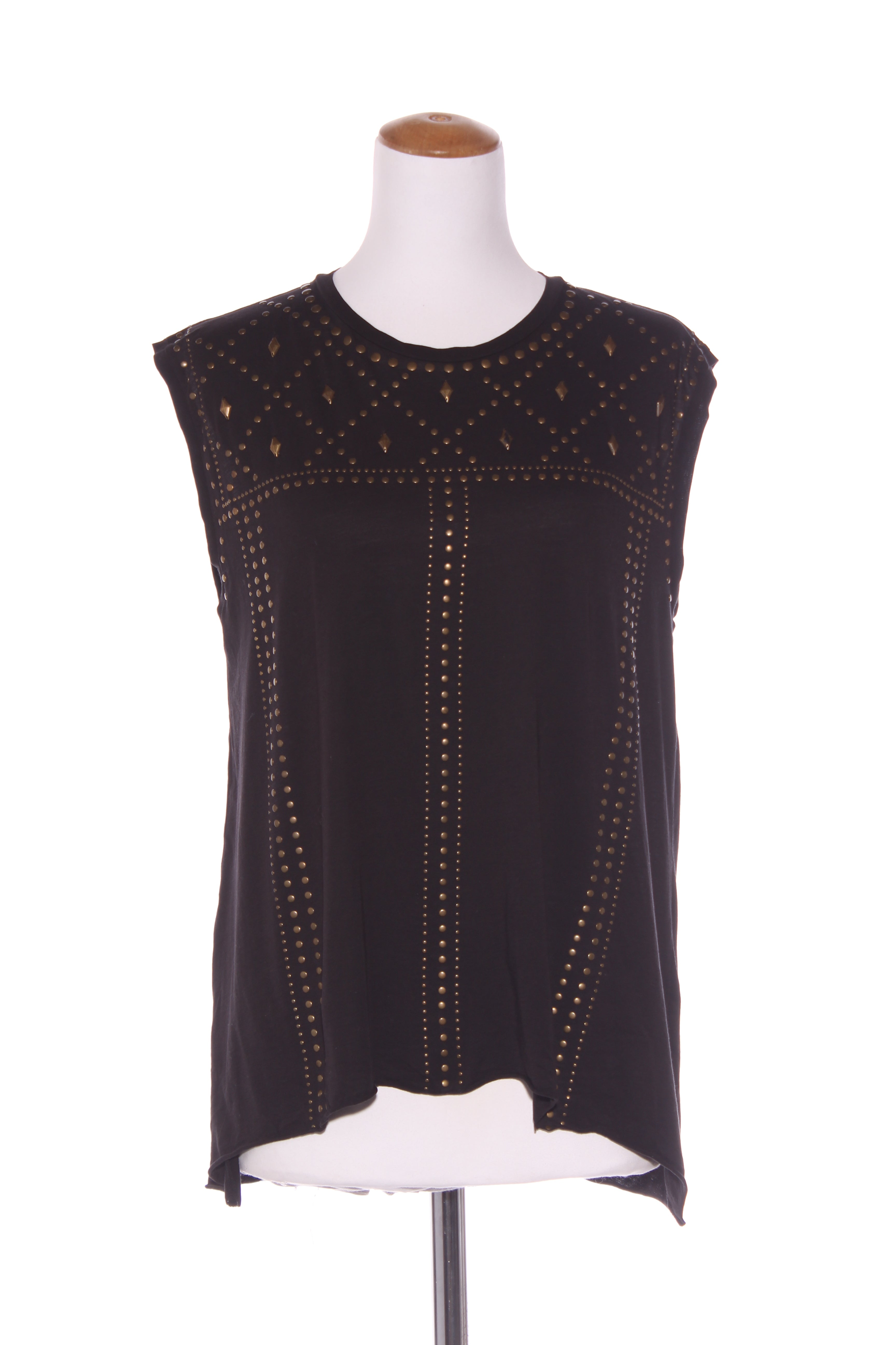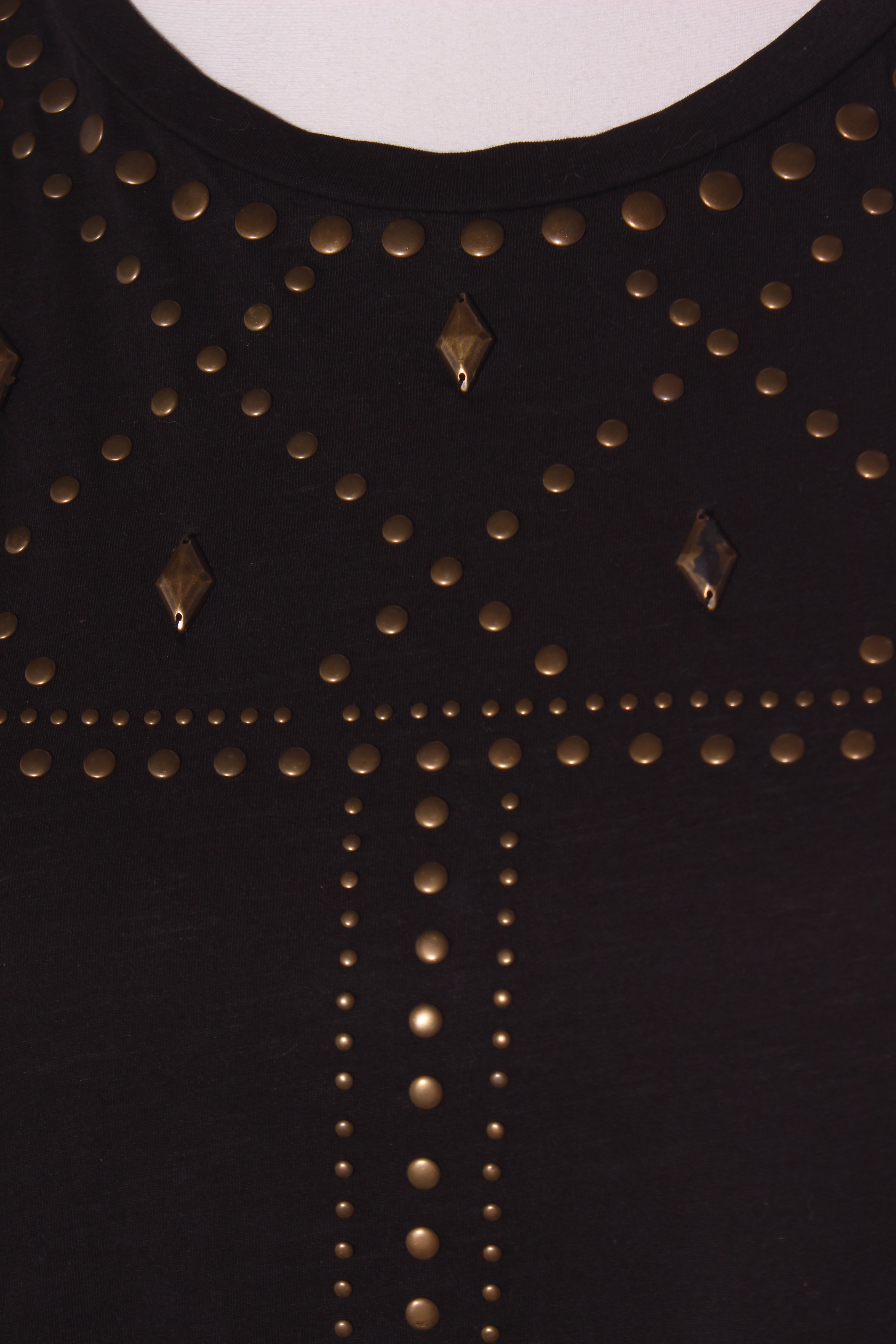 SIZE ON TAG: LFITS LIKE: 14COLOUR: Black, brassFABRIC: Pima cotton, Embellishments - Copper, polyvinyl chlorideCONDITION: Excellent prelovedMEASUREMENTS:BUST: 54cms WAIST: 56cms LENGTH: 61-70cmsNOTES: Fabric has stretch. Unfinished...