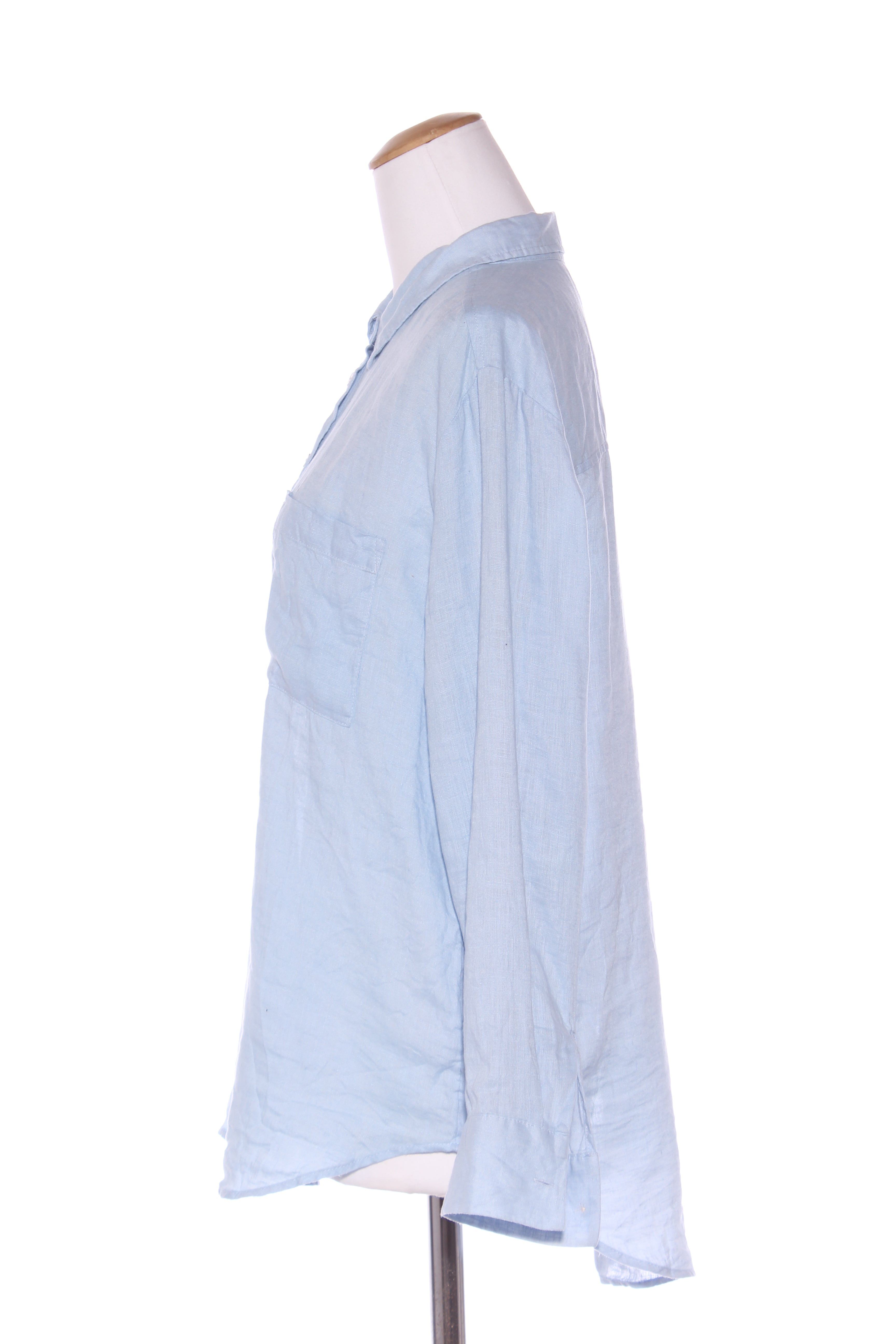 SIZE ON TAG: 10FITS LIKE: 10-12COLOUR: BlueFABRIC: LinenCONDITION: Excellent prelovedMEASUREMENTS:BUST: 59cms WAIST: 58cms LENGTH: 71-78cmsNOTES: Button up front and sleeve ends. Single front pocket.
