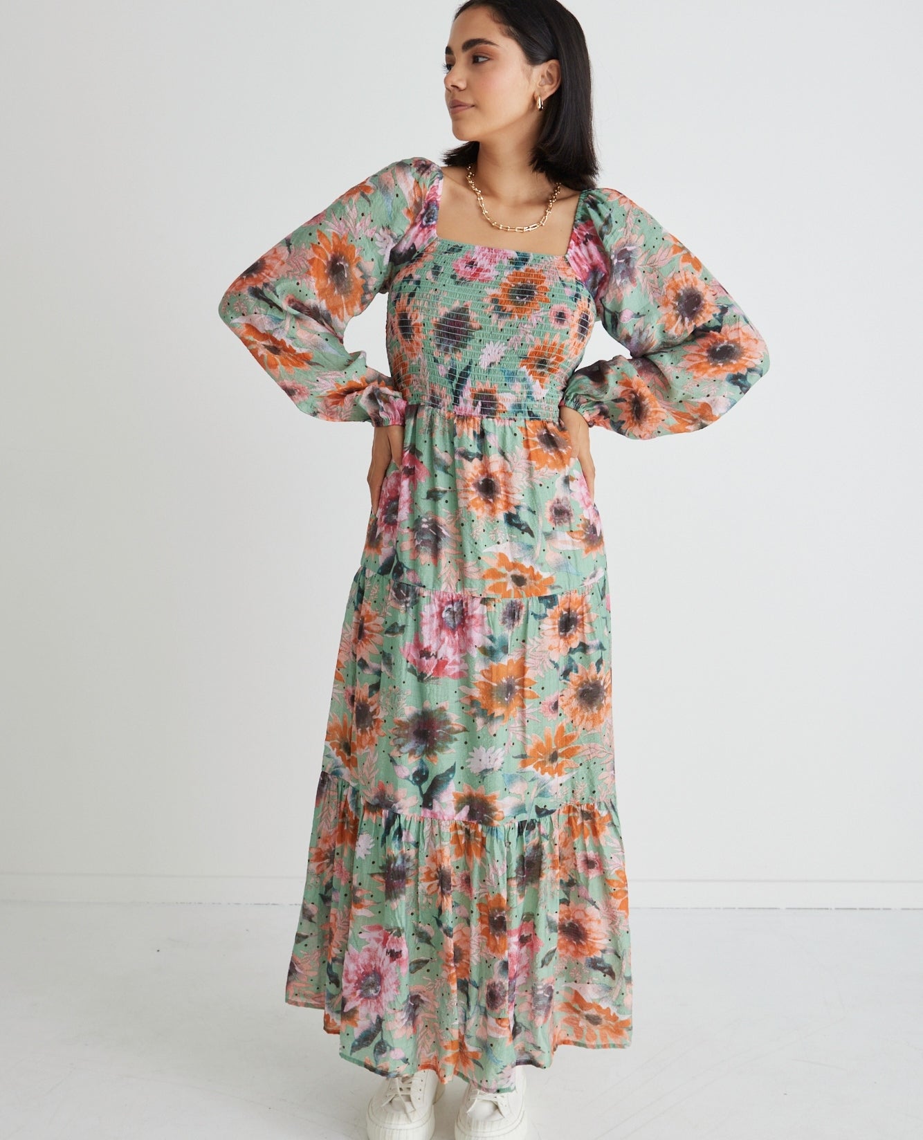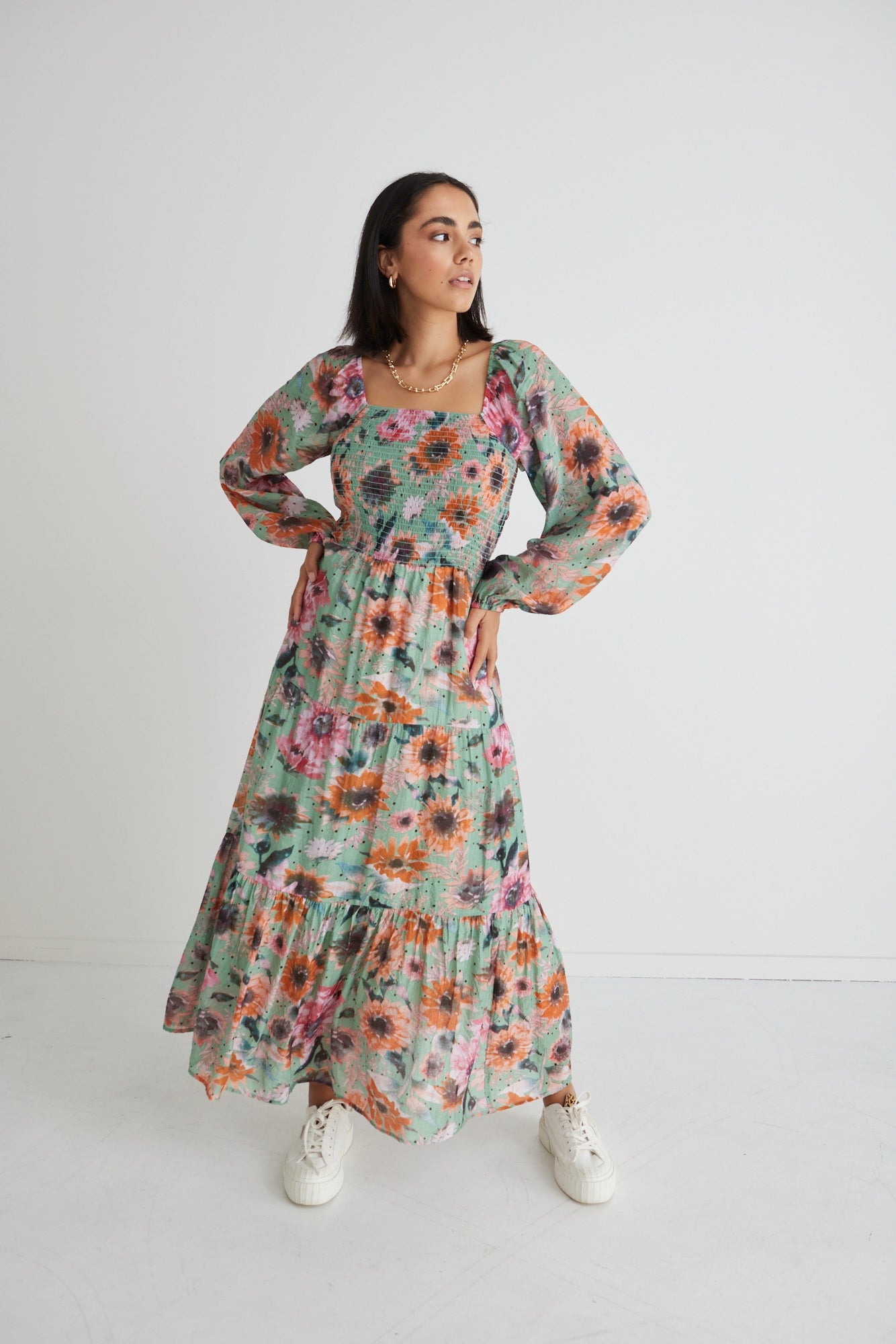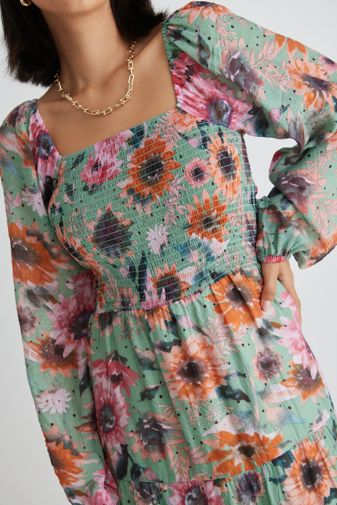 The ultimate Summer Dress, featuring a feminine tiered skirt in a lightweight luxury Cotton Voile print.