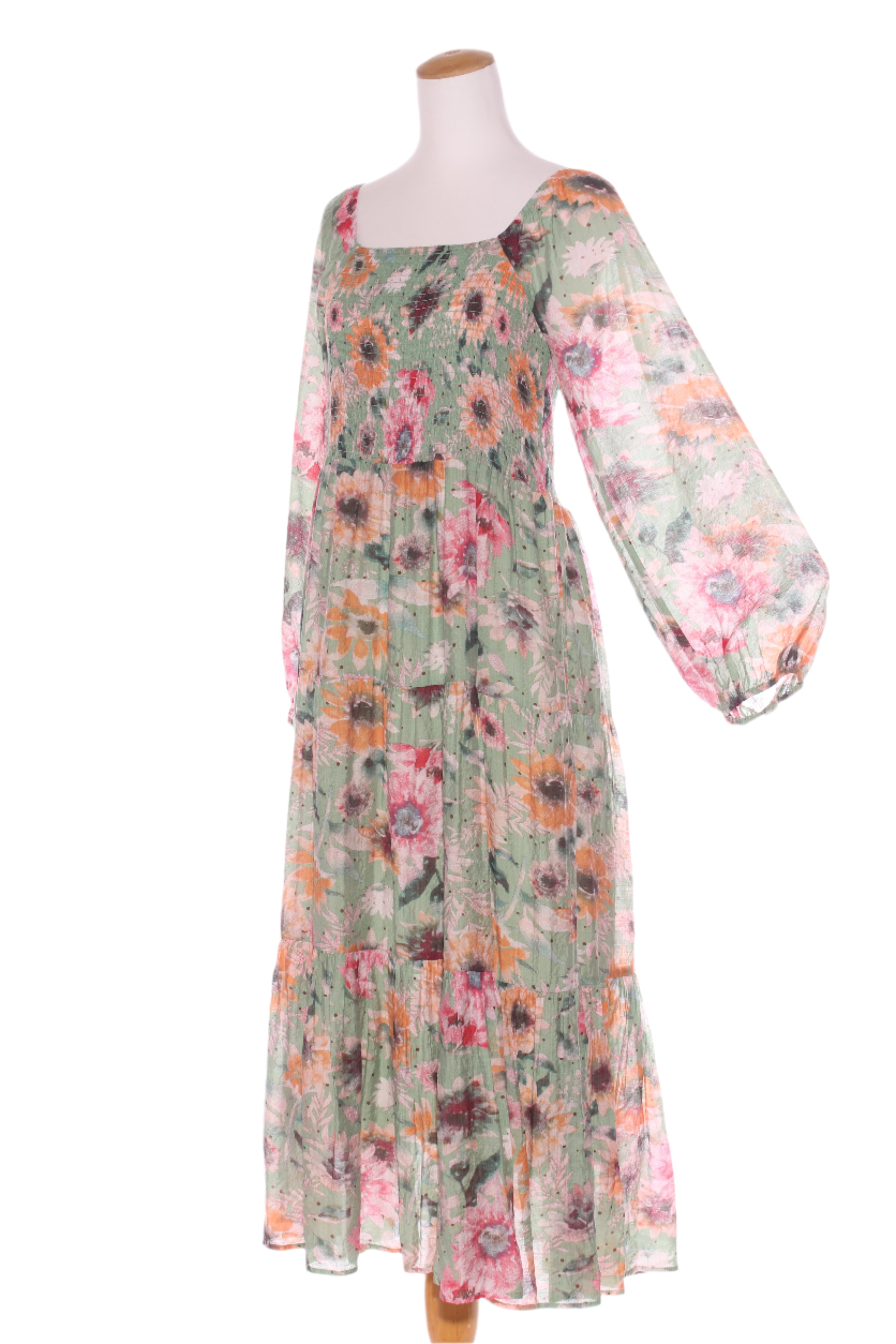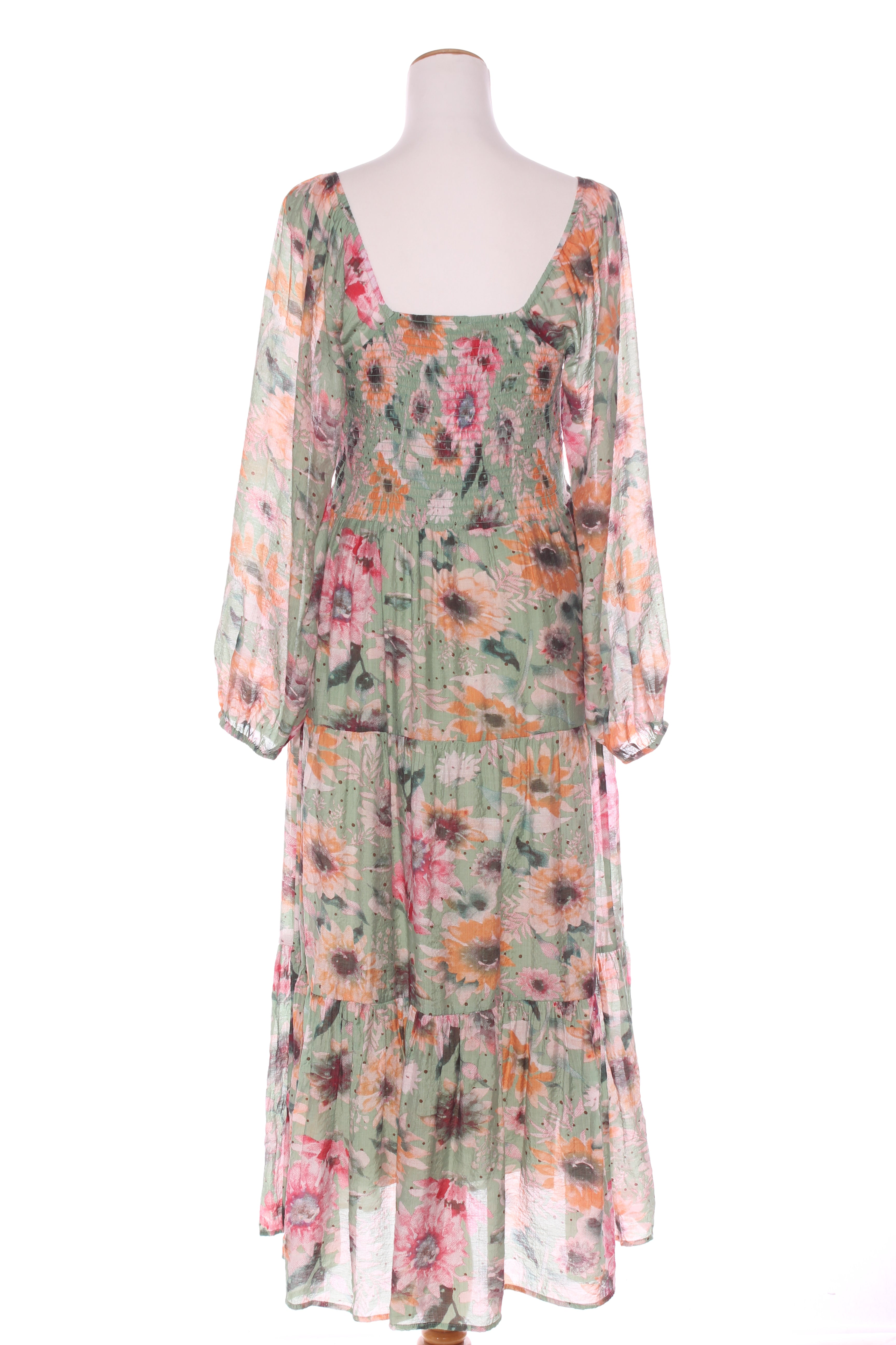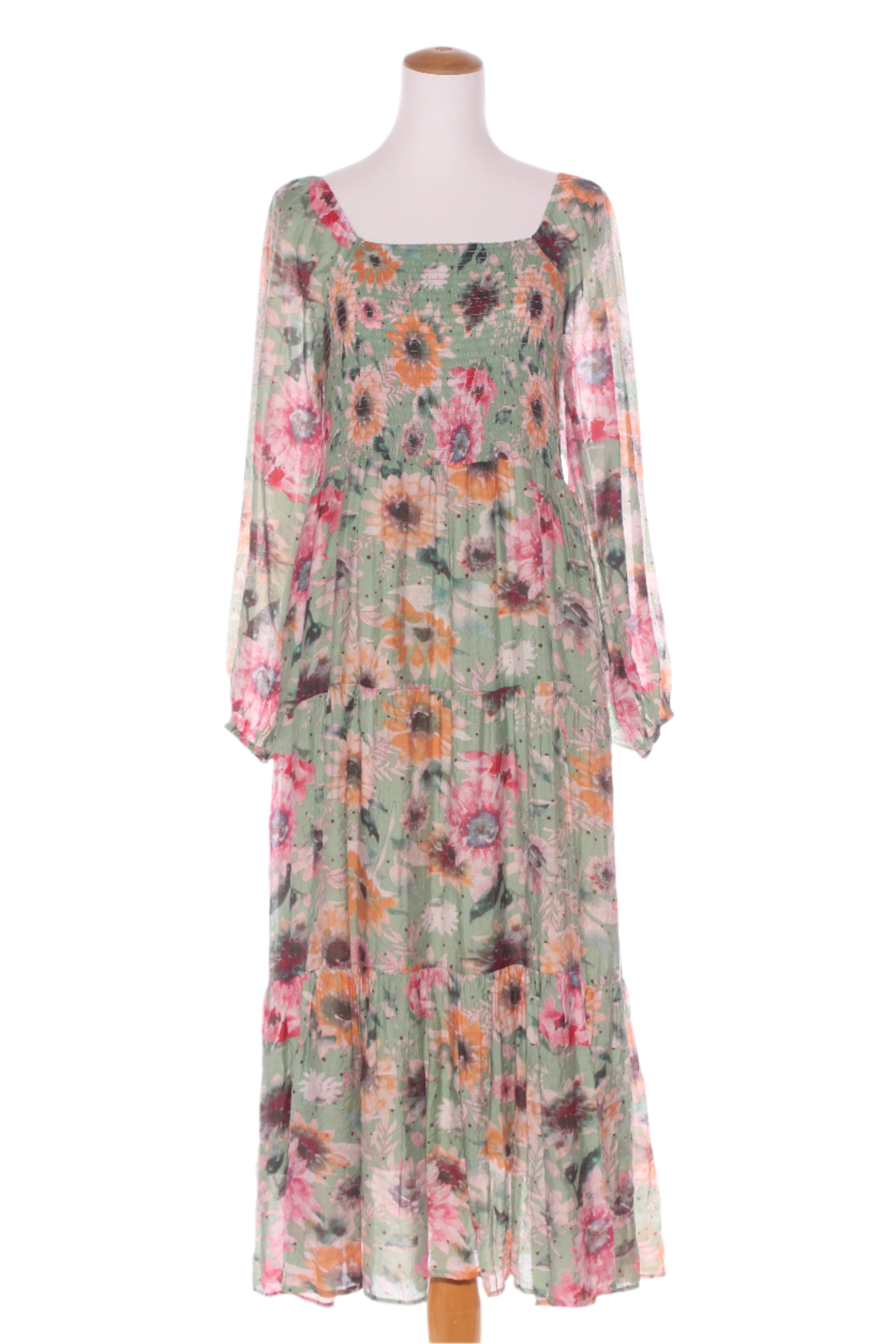 SIZE ON TAG: 14FITS LIKE: N/ACOLOUR: Green, multiFABRIC: PolyesterCONDITION: Brand new with tagMEASUREMENTS:BUST: 40cms WAIST: 40cms LENGTH: 132cmsNOTES: Pull over style. Elasticated shirred bodice and elasticated...