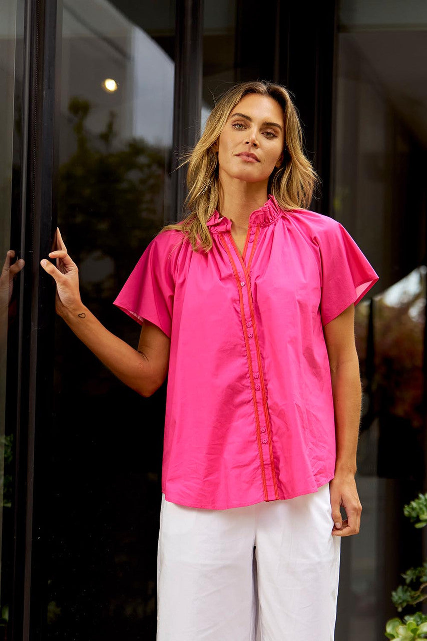 SIZE ON TAG: 18FITS LIKE: N/ACOLOUR: PinkFABRIC: CottonCONDITION: Like newMEASUREMENTS:BUST: 61cms WAIST: 66cms LENGTH: 72-82cmsNOTES: The Betty Basics Caspian Cotton Blouse is your go-to for effortless,...