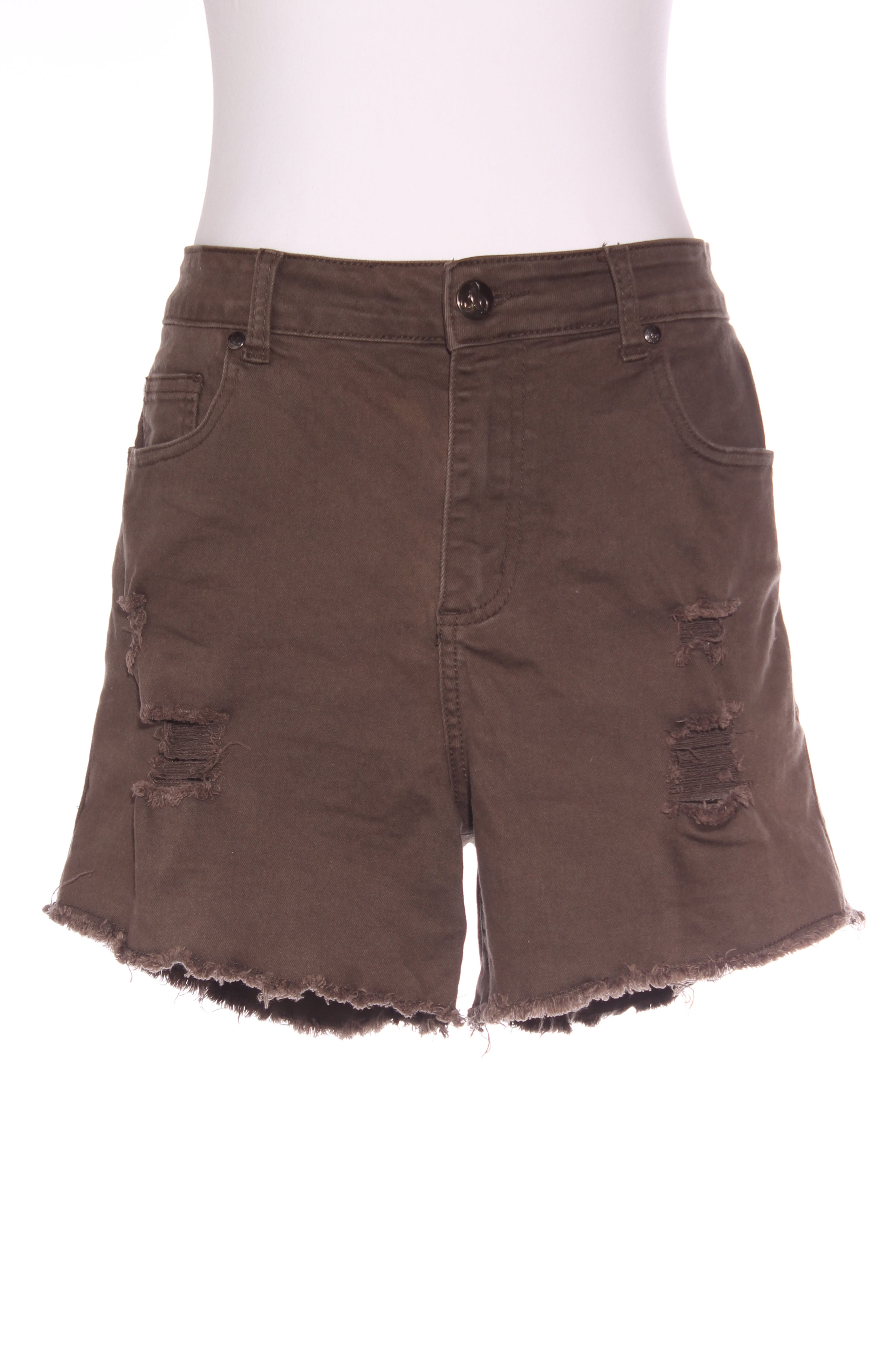SIZE ON TAG: 14FITS LIKE: N/ACOLOUR: KhakiFABRIC: 98% cotton, 2% elastaneCONDITION: Excellent prelovedMEASUREMENTS:WAIST: 45cms HIPS: 56cms RISE: 30cms LENGTH: 10cms (From crotch to end...