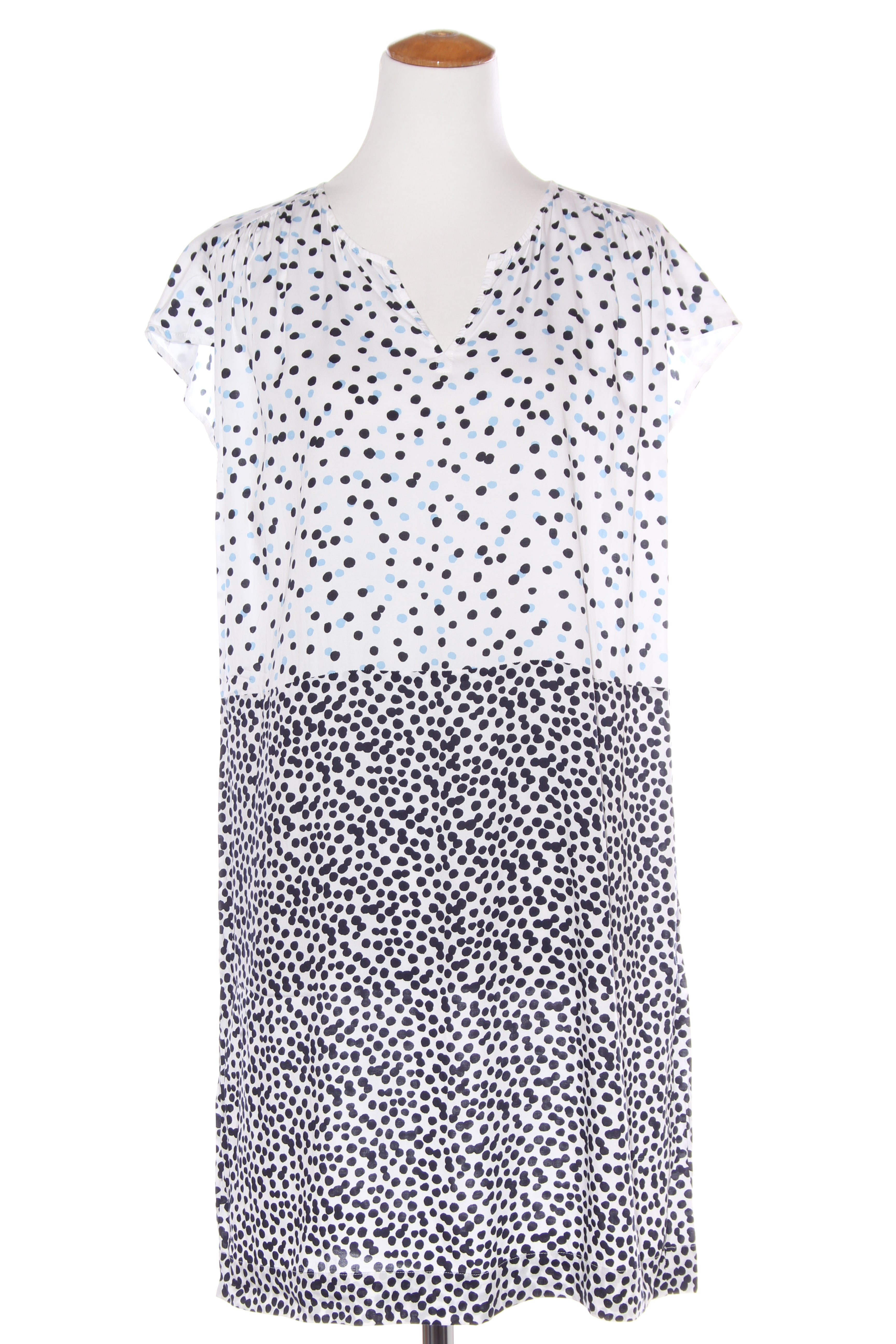 SIZE ON TAG: 12FITS LIKE: N/ACOLOUR: Black, whiteFABRIC: 65% polyester, 35% cotton, Lining - 97% polyester, 3% elastaneCONDITION: Excellent prelovedMEASUREMENTS:BUST: 48cms WAIST: 40cms LENGTH: 91cmsNOTES: Front...