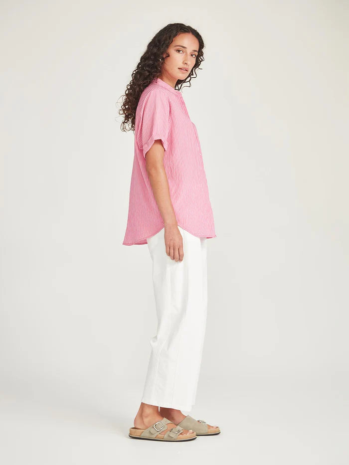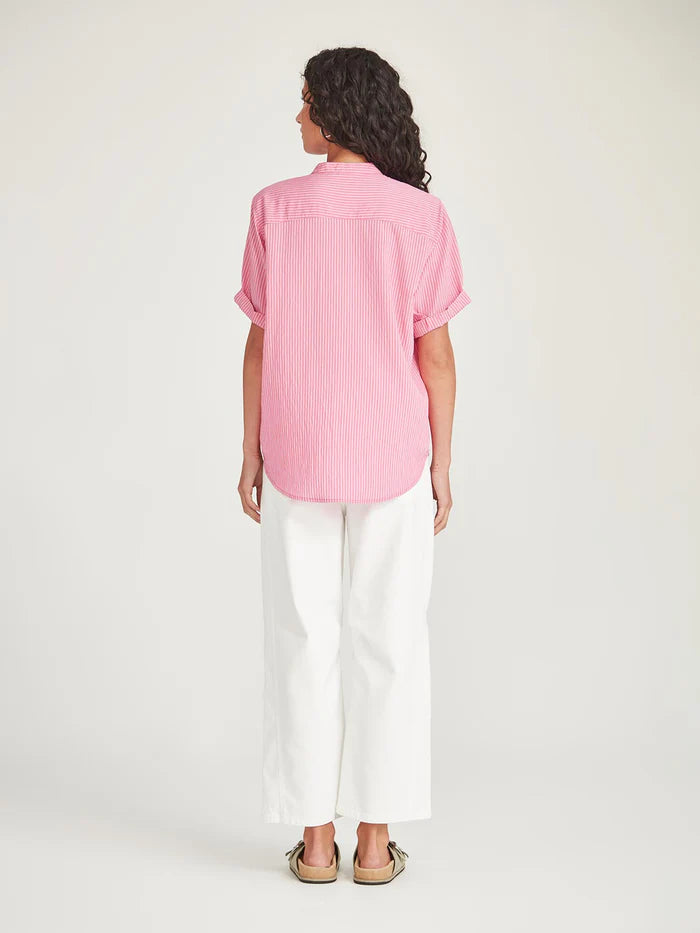 SIZE ON TAG: 14FITS LIKE: N/ACOLOUR: Pink, red, whiteFABRIC: 85% viscose, 15% polyamide CONDITION: Like newMEASUREMENTS:BUST: 62cms WAIST: 61cms LENGTH: 70-74cmsNOTES: * Current seasonThe Flynn Stripe Shirt...