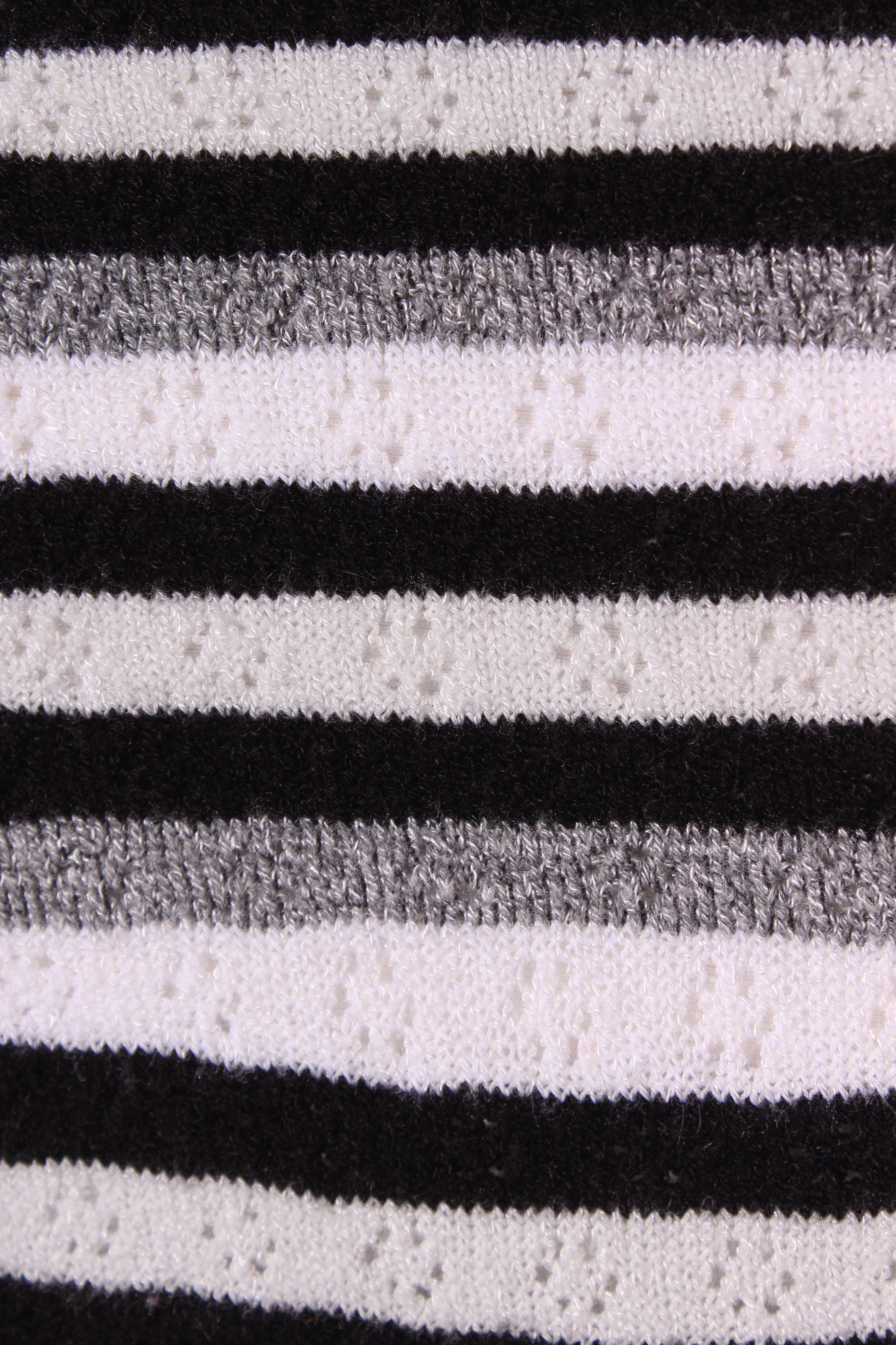 SIZE ON TAG: LFITS LIKE: 14COLOUR: Black, grey, whiteFABRIC: 42% acrylic, 42% viscose, 15% polyamide, 1% elastaneCONDITION: Excellent prelovedMEASUREMENTS:BUST: 50cms WAIST: 40cms LENGTH: 58cmsNOTES: Made in...